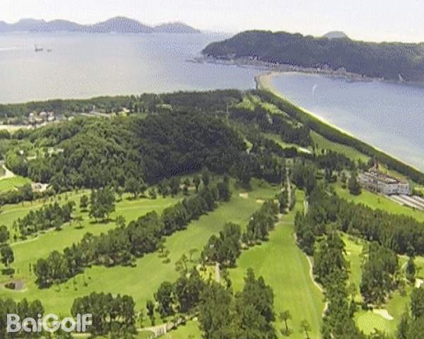 滨海球场。位于靠近志贺岛的西户崎,地势平坦。虽然是较短的球场,但由于会吹有滨海地区特有的复杂风向,所以对风的判断就成了重要的一点。前九洞有着细微的起伏,球道的倾斜度会微妙地发生变化,所以不能掉以轻心。第 7 洞是右狗腿洞,不过有松树耸立,无法进行抄近路击球。后九洞各个球洞相互独立,也有需要越过池塘以及林间风格的球洞。第 10 洞从第二杆开始朝着玄界滩方向击球,将击球的畅快与壮丽海景融为一体,带来别具一格的高尔夫体验。
