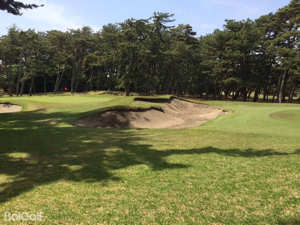 海边球场。球场由井上诚一设计而成,难度74.4。在日本所有的球场中难度也是屈指可数的。在同一个球洞中需要自由掌控左偏球和右偏球。球洞两侧的松林枝繁叶茂,四面八方都给人一种压迫感。后9洞受海风影响较大,难度系数也很高。