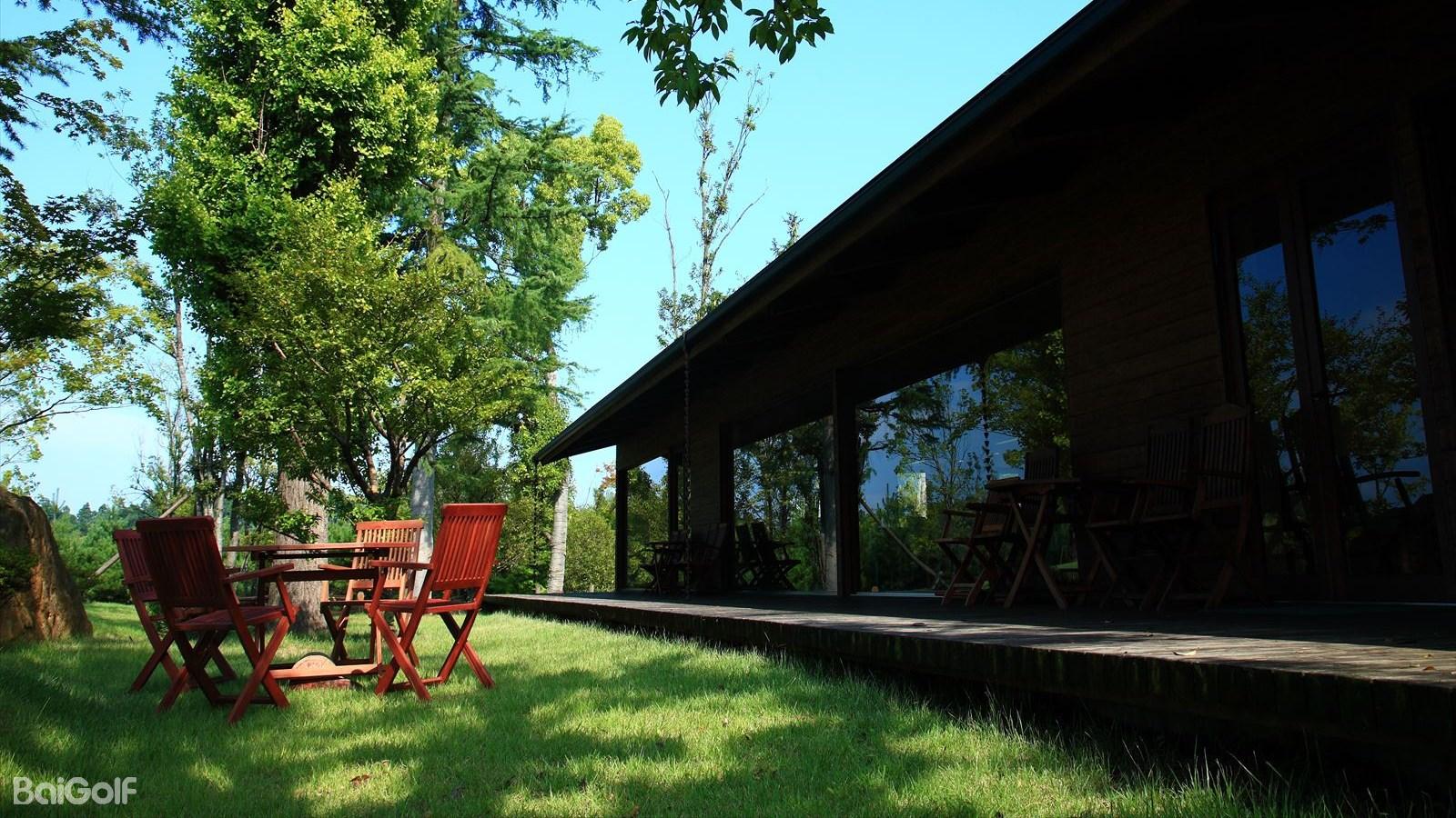 前9洞是一个丘陵球场,从俱乐部会所能将美景尽收眼底,还能欣赏浅间山和妙义山的美景。后9洞是一个林间球场,在起伏的地形上缓缓舒展开,能欣赏到四季的美景。18号洞左侧能遥望到水池,可以畅快的开球。果岭是跨越水池的三段式果岭,需要准确地击球。