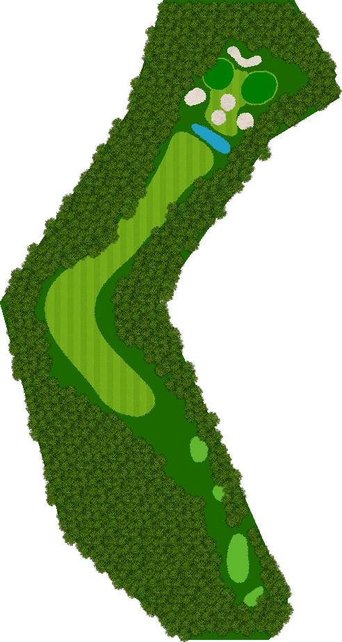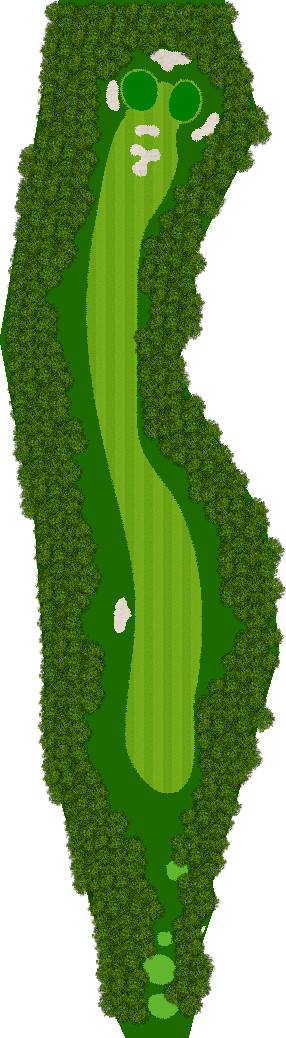 球场的标志性洞口是9号洞的500码以上长洞,第3杆击球点位置较低,难以看到果岭,因此在第二杆时就需要确认果岭的具体位置,这对于制定合适的策略非常重要。