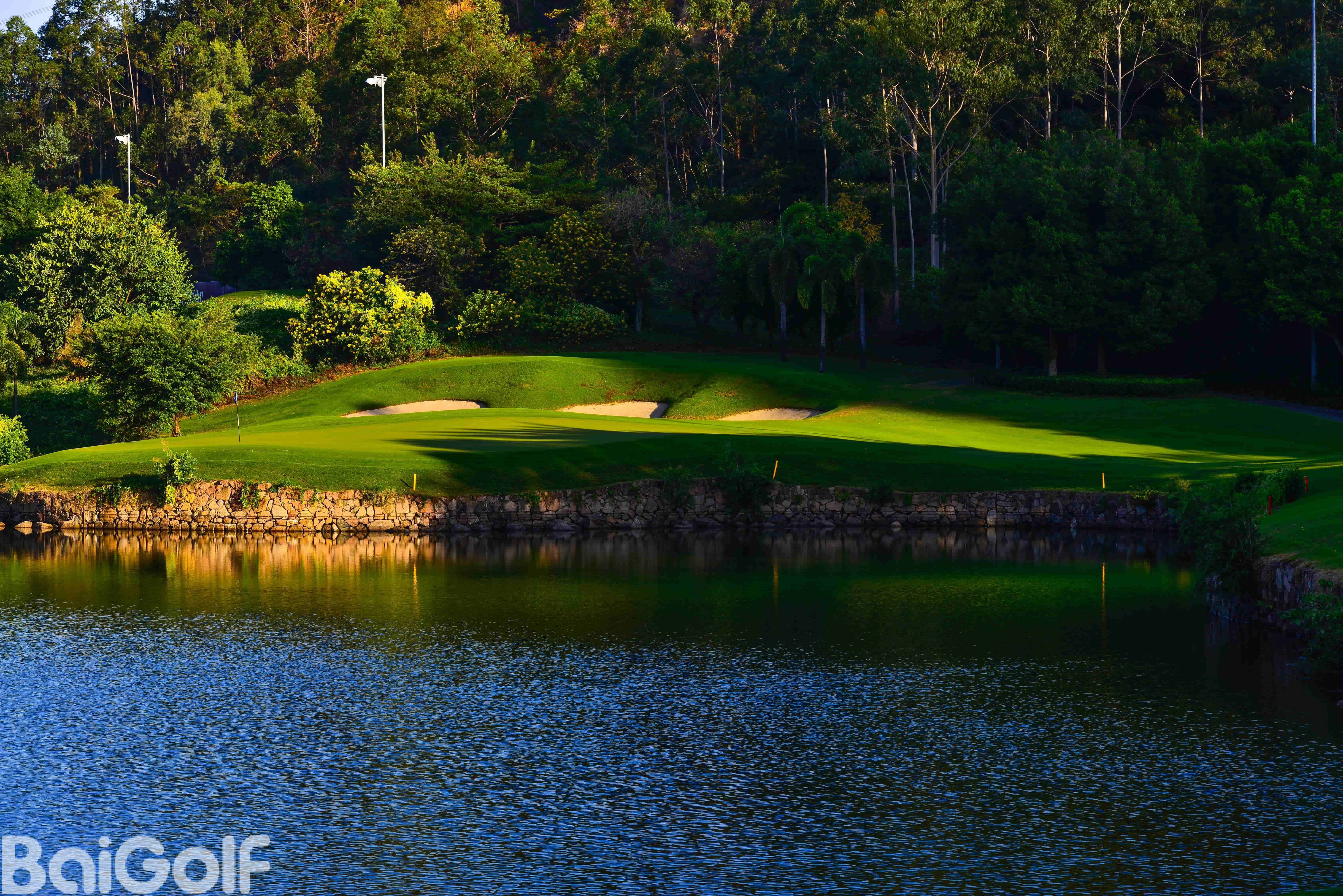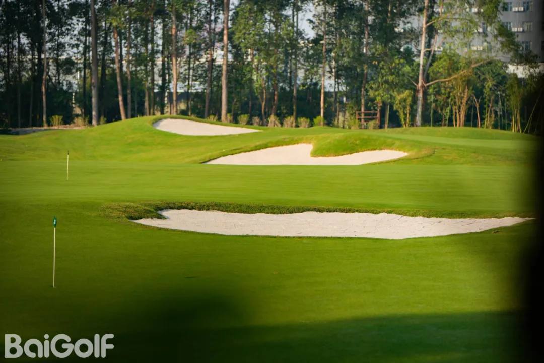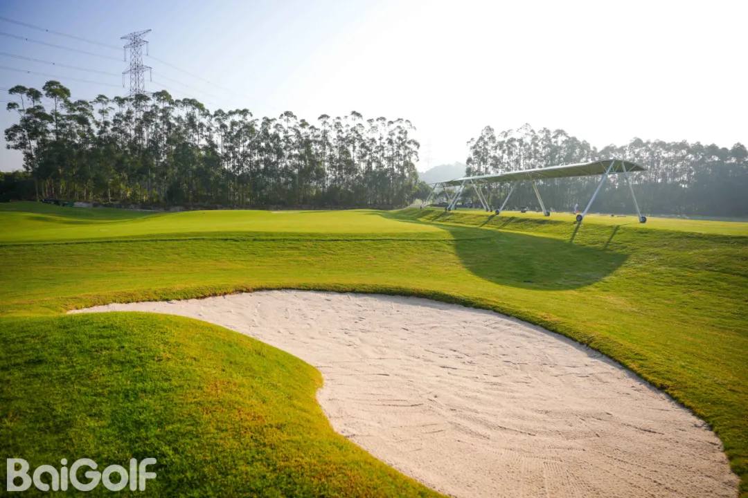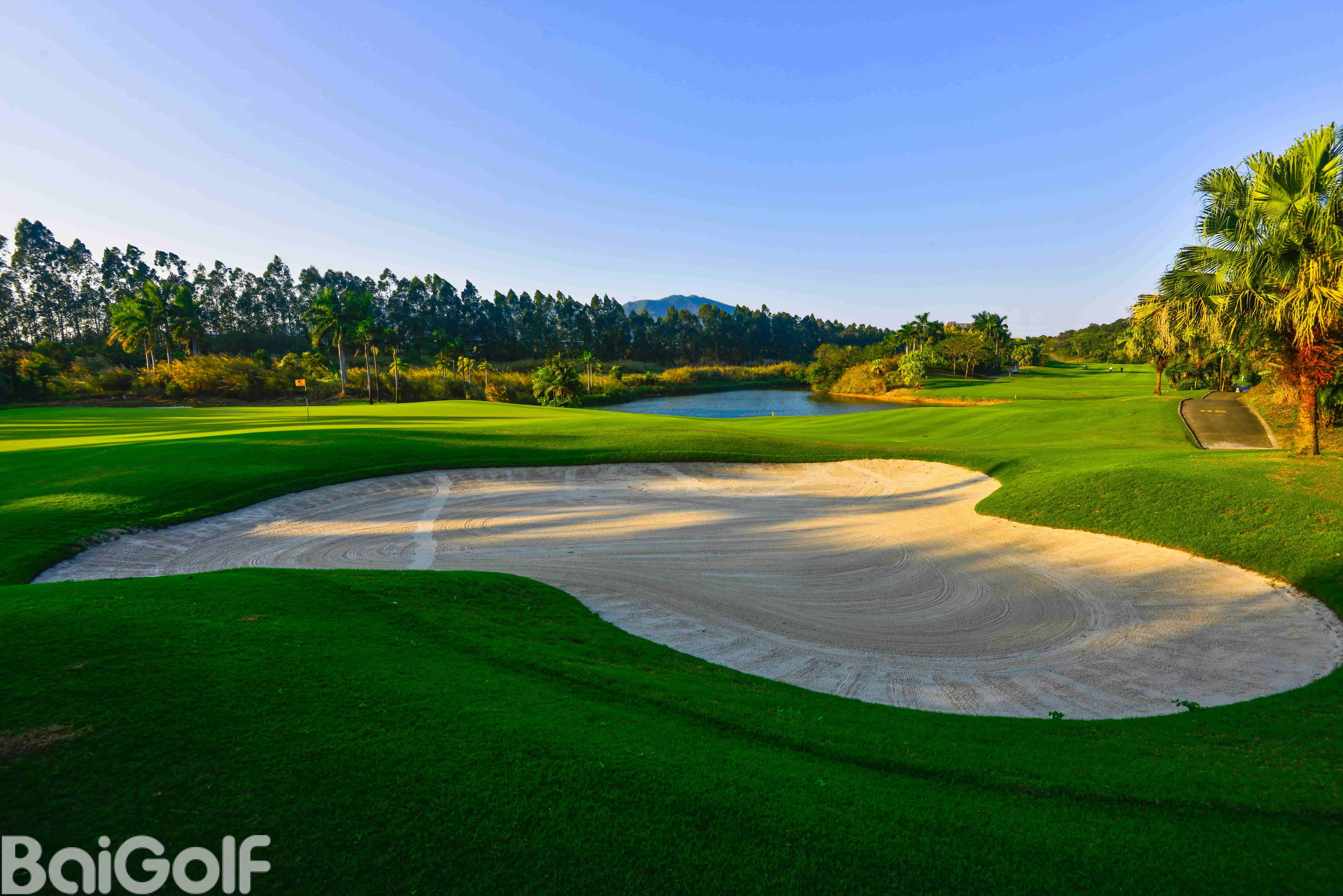 果岭呈薯片型设计,变幻莫测,且面积恰到好处。球道宽窄不一,多种策略性的击球线路,变化多端障碍设计,对球手来说,无论是短杆、推杆、长杆,还是技术的稳定性和精确度均是全新考验,极富娱乐性和挑战性。因得天独厚的地理位置与国际锦标赛级球场品质,球场一经建成即被选定为2010年广州亚运会高尔夫项目的热身训练及比赛备用场馆。
