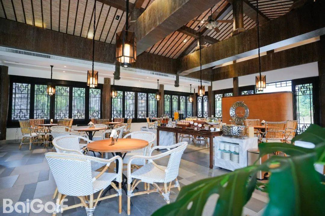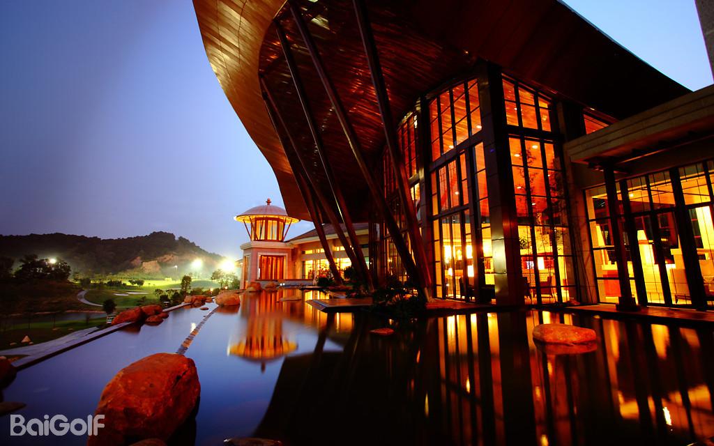 新亚洲风格的会所外观独特,由全球著名设计公司KTGY设计,前低后高的马鞍型屋顶给人以强烈的视觉冲击;会所大面积玻璃外墙的使用令各功能区域采光充足,尽显低碳环保意识。而大堂吧、餐厅、更衣区、宴会厅均可270°观赏球场,大型豪华多功能厅,可容纳250人同时入座,是举办各类会议及宴会之首选。