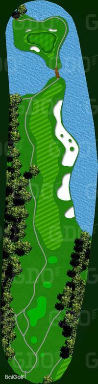 9号球洞是一个令人印象深刻的4杆洞,它以一个巨大的水池为特色,不仅距离长,而且其果岭宛如一座浮岛,漂浮于水面之上,为球手提供了一个既美丽又充满挑战的击球目标。这一洞的设计考验着球手的精准度和策略选择,是整个球场中的一个亮点。
