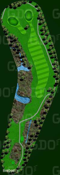 球场的设计中,一条潺潺的小溪横穿而过,为这片绿意盎然的场地注入了灵动的音符。溪水在阳光下闪烁着银光,时而轻声细语,时而奔腾跳跃,为球场增添了一份生机与活力。此外,球场还精心设置了13个大小不一的池塘,它们如同散落的明珠,点缀在球道之间,成为球场中不可或缺的挑战点。球员在击球时必须时刻警惕这些水域的存在,稍有不慎,球就可能落入水中,让比赛的进程增添几分波折。