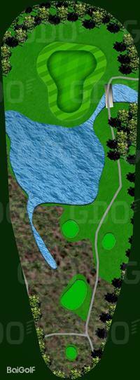 特色洞是第六洞,这是一个狭长的下坡3杆洞。从发球台向下望,可以看到果岭三面被小山环绕,仿如一个露天剧场。球道右侧的池塘一直延伸到果岭。若一杆打到池塘上方,球会停在池塘的狭窄处,第二杆即可瞄准果岭,形成一条长距离的挑战。起伏的果岭要求精准的推杆。