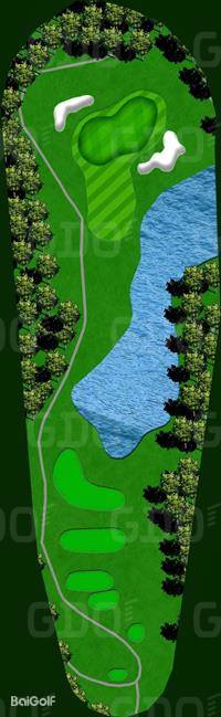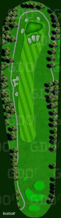 球场的入射点(IP点)是平坦的,但其他地方则有轻微的起伏,池塘、沙坑和树木被巧妙地布置在球场中。如果球手的击球偏离了设计意图,那么打球将变得异常艰难。这种设计不仅考验球手的技术,还考验其战略规划能力。