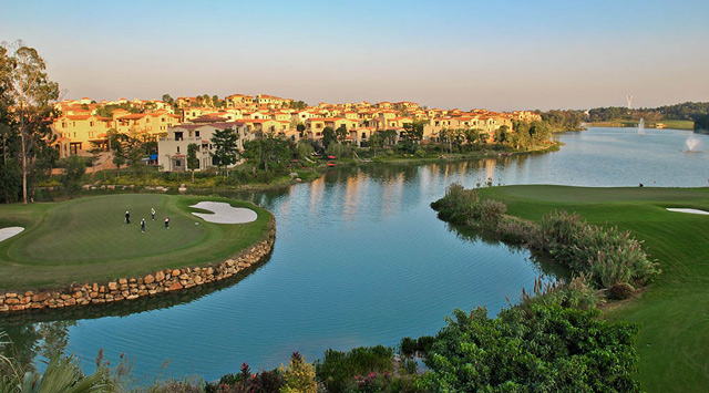 山语湖球场为18洞72杆标准杆锦标赛级的高尔夫球场,球道总长度为7117码,是著名的Nelson & Haworth(N&H)设计师根据自然的地势景貌,更利用天然形成的岩石、丛林、湖泊等作为球道上的天然障碍区和球场景观点缀,球道四周群山环抱,植被茂密,苍翠清幽,地势蜿蜒起伏,为山地、水岸结合型球场。