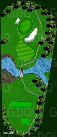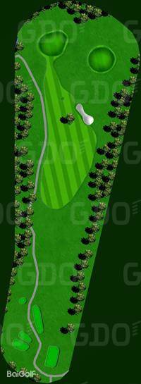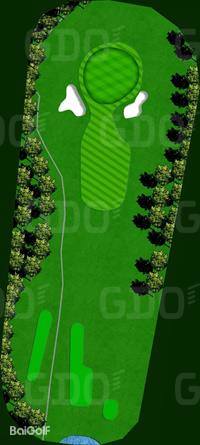 第13洞:这是一个短洞,发球台前有一条小溪,虽然实际距离并不长,但小溪的存在成为了一种心理障碍,考验着球员的心理素质和击球策略。