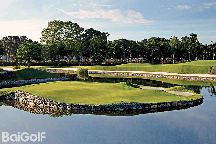 佛山大浩湖高尔夫球场座落于广州市与佛山市之间,离开繁忙的市中心不远,整个球场占地面积4500多亩,碧水、绿地、蝉鸣,可称都市的世外桃源。Mr.Ross Forbes是这个18洞国际标准72杆球场设计师,球场堆砌了不少人造山丘,具有迷人的欧美特色。尽管球场原有的地形颇为平坦,Mr.Ross Forbes的设计巧妙地把各个洞分离开,增加了球道走势的流动性,视觉性丰富之外,打球的趣味性亦相应提高。为满足打球者的要求,会所和酒店都兴建得很具规模,足以满足国际大赛及各大企业举行各种各样活动的要求。