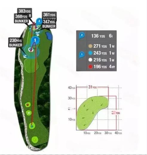 云东海高尔夫球会球道全长7136码,标准杆72杆,总面积2500亩。球会为城市森林(山地)球场,四周峰峦叠嶂,青山环抱。球道取天然地势,或逐阶而下,或起伏不定,或湖水相依,或沙坑拥簇,设计师很好的利用了山体的走势,让蜿蜒的球道与森林溶为一体,巧妙地融合了天然山谷地势,起伏难料,考验球手们的观察力及准确性。如诗如画的自然美景和顺应天赋地貌而建成的球场,令球手在享受挥杆乐趣之时彻底隔绝了城市喧嚣,衬托出其高雅尊崇的贵族气质,宛如置身于世外桃源。