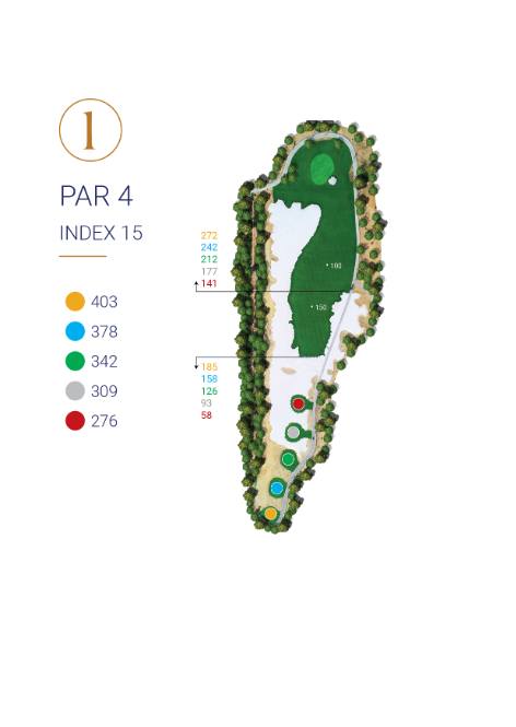 球场坐落在沙丘中,海拔从4米到11米不等。球道毗邻大海,球手挥杆中可观赏碧蓝色的大海。球场坐落在令人叹为观止的流动沙丘之中,海拔从4米到11米不等。