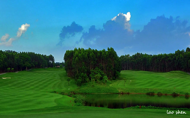 尼克费度说高尔夫球场设计是生活的一大乐趣。在观澜湖挥洒创意造就了这个壮丽辽阔的球场,成为一个观赏型及比赛型球场。其中第16洞果岭建在一个四面环水的小岛上,极富乐趣和挑战,故曾称为龙岛球场。
