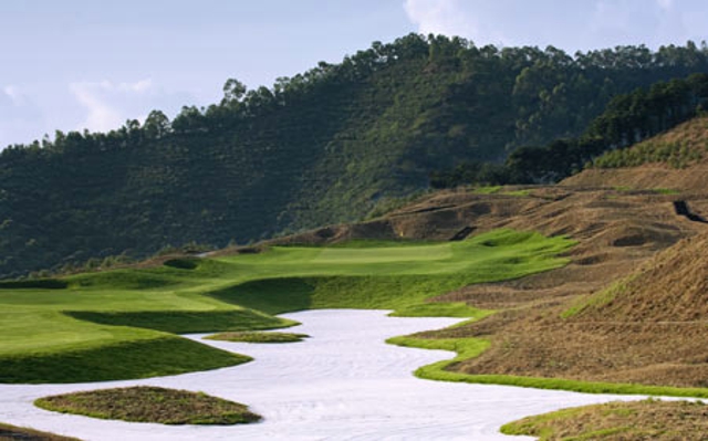 北戴球场2007年8月1日正式启用。北戴球场是设计师北戴在中国的首项作品,也很可能是这位设计大师的收山之作。北戴生长于美国中西部,他不但是当今高球界的殿堂级人物,年少时更是一位出色的业余高尔夫球手,北戴设计的球场被广泛认同并被认为极具战略性和挑战性。他设计的球场有十个排名美国100名以内,而且相比其他设计师,在他所设计的球场上举办PGA 职业高尔夫赛事的次数是最多的。这次他设计的北戴球场,以费度球场为邻,将他以往球场的设计风格,许多的设计哲学和理念相融合。球场上千种植物,数以千计的枕木、小而诡异的壶形沙坑、不拘一格的波浪式起伏果岭都会给球手带来超乎想象的挑战,而这些都是可以触及的目标。最具创意性的是在第18洞的发球台与果岭之间竟然有一列火车的车厢蜿蜒在球道旁,给人非常强烈的印象。这个发球台是在一个山坡上,可拾级而上,脚下踏的台阶,不是石头砌的,也不是土坡堆的,而是一根根漆着沥青的枕木。这枕木不是假的,而是真的从轨道上拆下来的“原生态”。
