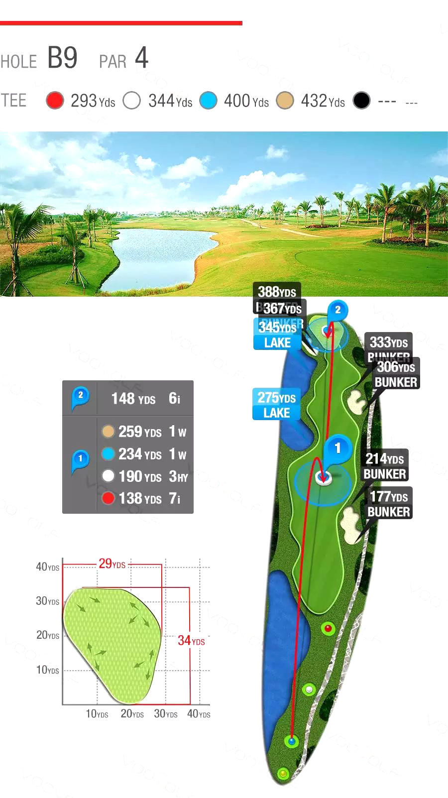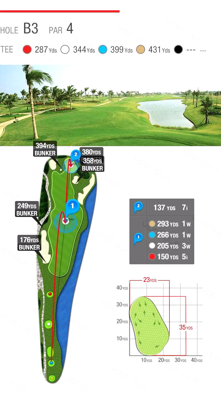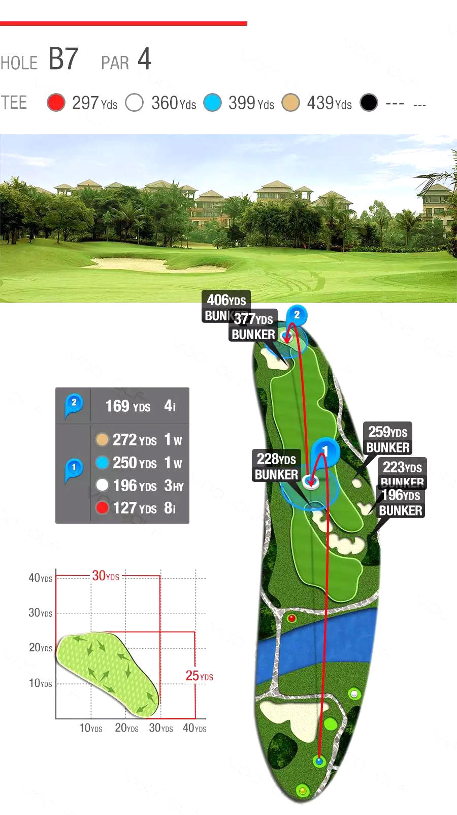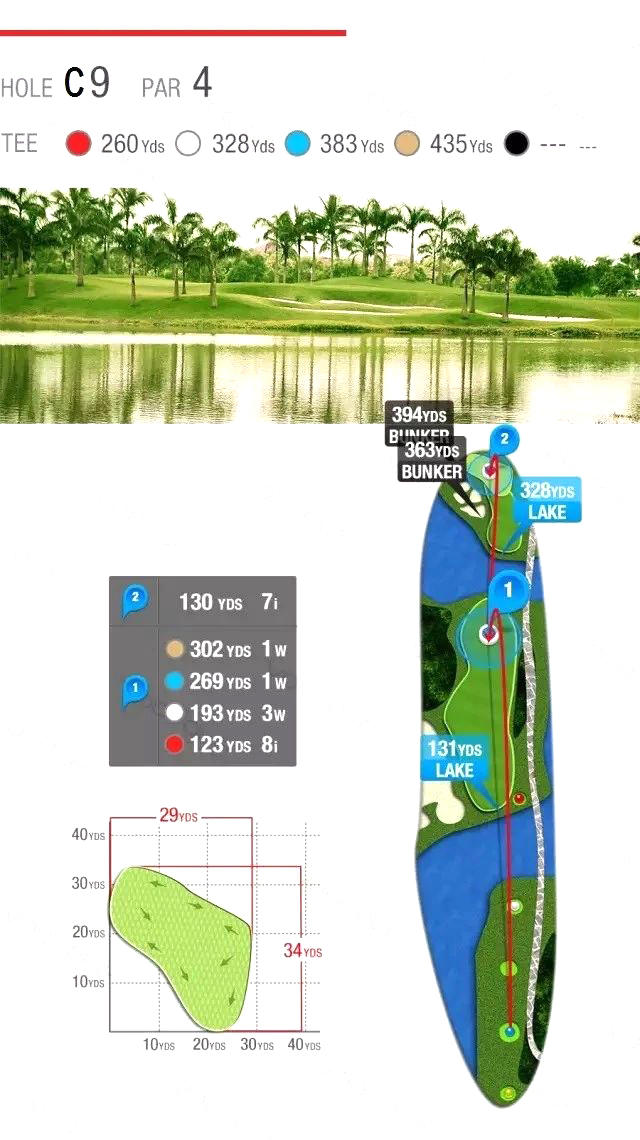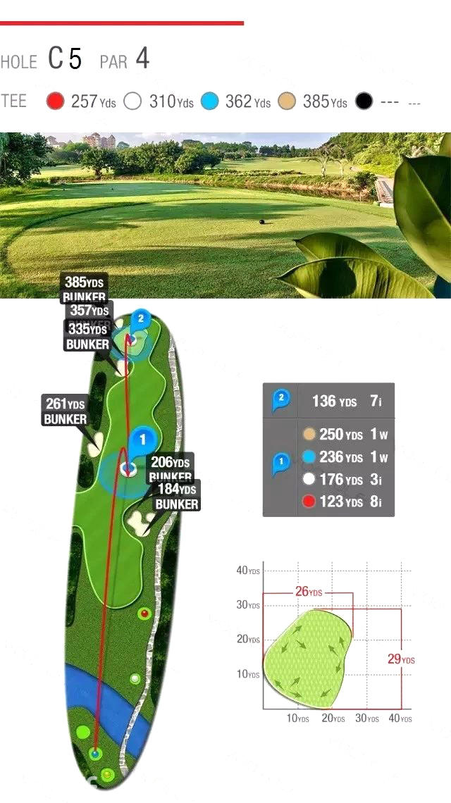 将高尔夫运动融入自然,充分利用原生地貌进行建造,由不同的河流、湖泊及棕榈树点缀而成,极具观赏性、趣味性和挑战性,使运动之余更可亲近大自然,让身心完全放松,尽享挥杆的乐趣。