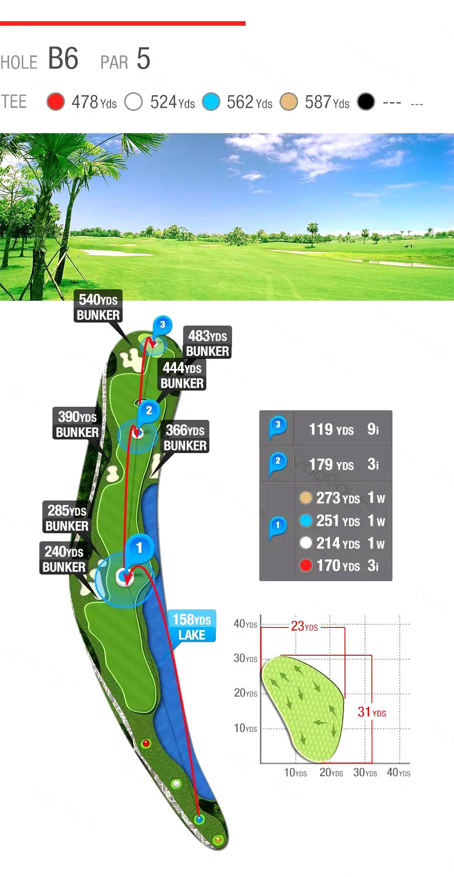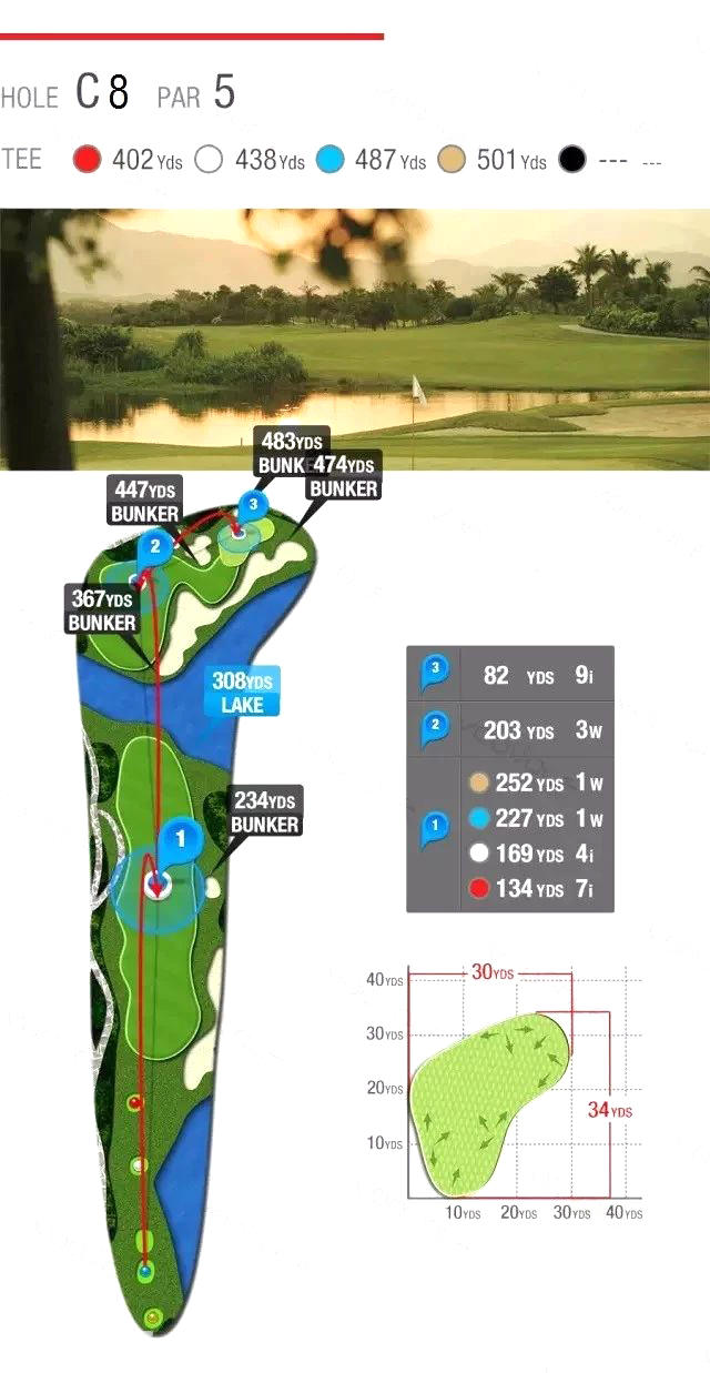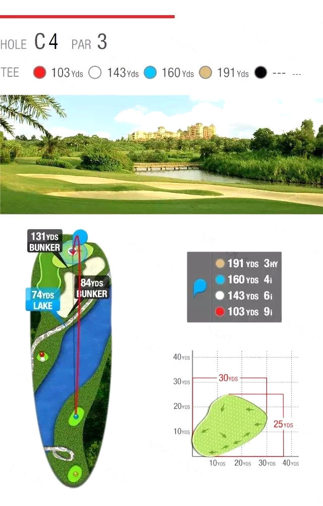 由高尔夫设计大师Jack Nicklaus Jr.亲手打造的18洞锦标级球场,将高尔夫运动的精髓与自然景观完美融合。球场利用自然地貌,以河流、湖泊和棕榈树为点缀,创造出既具观赏性又充满挑战的球道。有2个球场:B场,C场。以平衡大自然的气息为基础,由不同的河流、湖泊、棕榈树及荔枝树点缀而建造。球场连绵起伏,每洞布局匠心独运,变化莫测,既训练技巧又能考验击球策略,充分地流露设计师对高尔夫球的专业要求,令球手无时无刻於优美的环境享受无穷乐趣,是一个具有专业国际比赛条件的高尔夫球场。