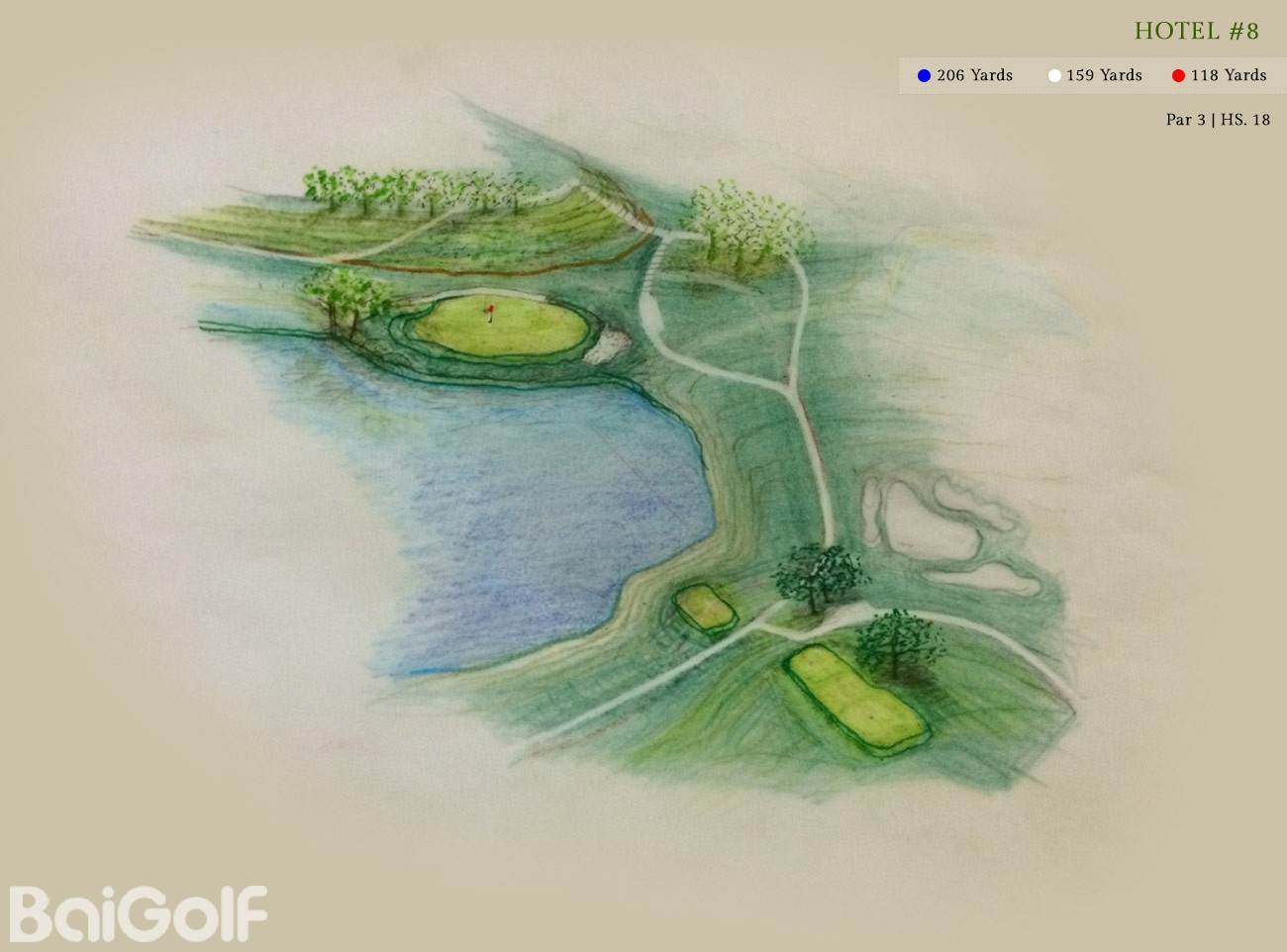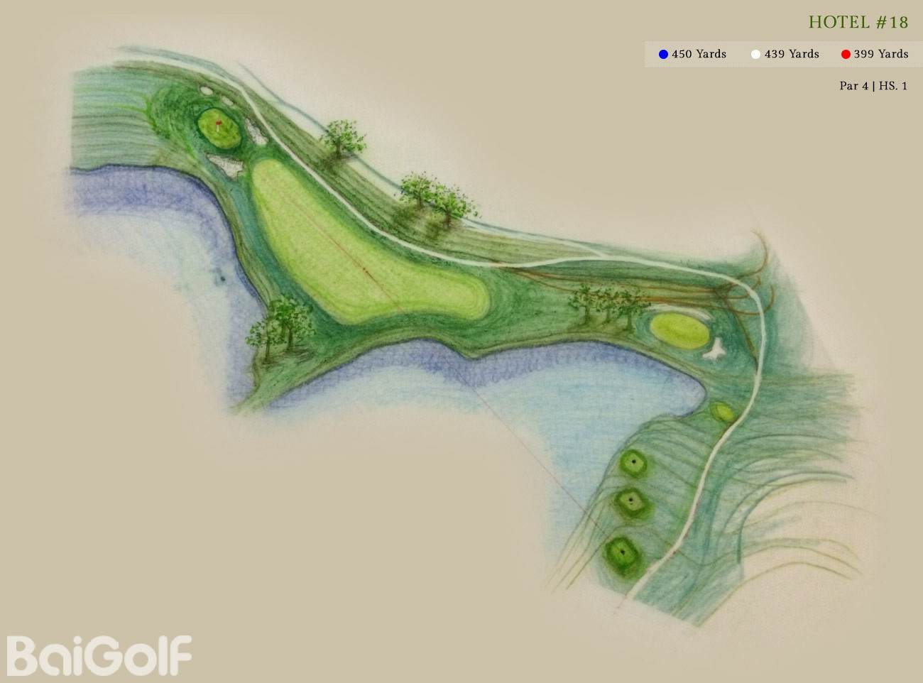 球道两旁都有大量树木,其中许多果岭都有凸起,挑战性十足。球场适合所有水平的球手,但17和18号洞独具特色和挑战,百高建议做好策略后再击球,不然可能会弄丢前面得到的好成绩。