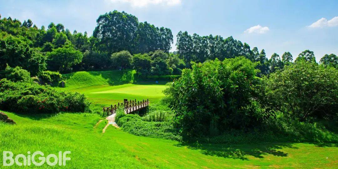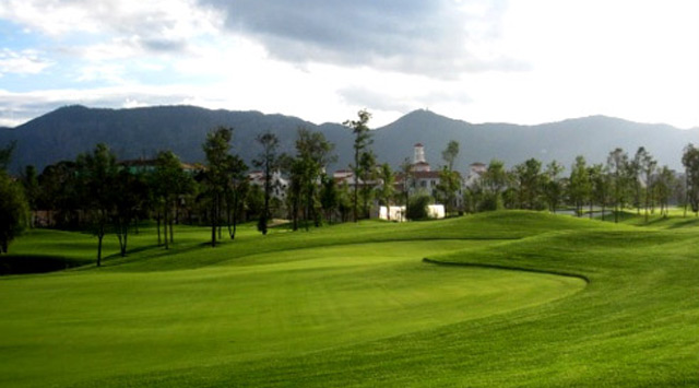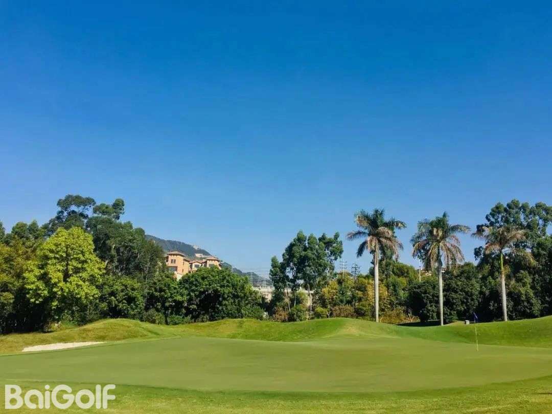 18洞国际标准高尔夫球场,球道总长7108码,球场由美国著名的克雷戈高尔夫工程公司匠心设计,极具挑战性。9洞灯光球场,可以让您夏季在凉爽的夜晚洒脱挥杆,充分领略高球的魅力。球场自然环境优越,天然低丘山地,依山傍水、山水相映。球场配备全自动计算机控制的喷灌系统和最先进的草坪机械,以至修剪出完美无暇的球道和果岭。球场内的两虎(山丘)两龙(溪流)就像虎踞龙盘,气势磅礴。前九洞依湖顺溪,错落有致;后九洞绕山盘行、幽谷茂林、跌宕起伏,让高球迷在极富挑战性的挥杆中潇洒尽兴。球场整体高低起伏,层次分明。