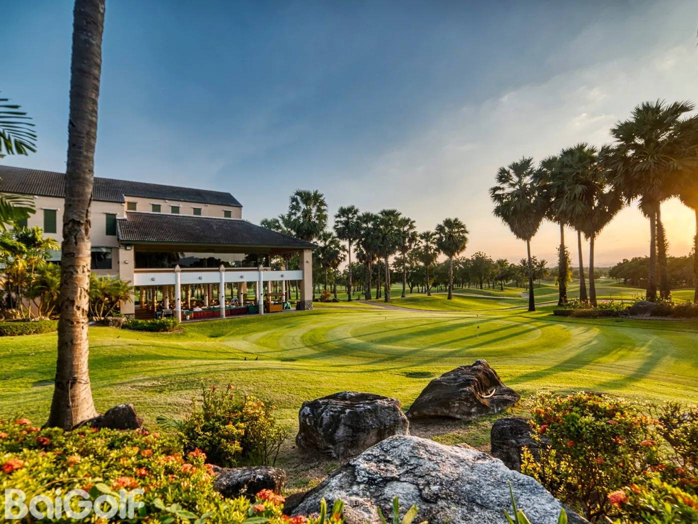 从发球台上眺望,果岭时隐时现。精心修剪过的球道上,设置了巨大的土丘,还有精心布置的沙坑,形成了一个又一个设计出色的球洞。成熟的棕榈树种满整个球场,水障也时常出现。在果岭上击球有严谨的方法,这时记得咨询一下你的球童,他们能准确地度量,让你的球技得以充分发挥。