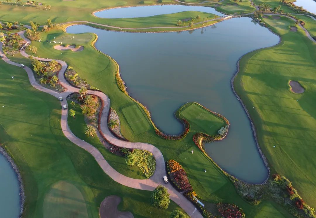 隆万球场后发球区长 7,538 码,标准杆数为 72 杆。东球场穿过一系列湖泊和森林区域。水障碍保护着果岭,击球时球杆的选择很重要。西球场更加开阔,但有更多的沙坑和起伏的球道。隆万的设施包括切球果岭和推杆果岭以及草地练习场。俱乐部会所非常现代,设有优雅的更衣室、国际餐厅和备货齐全的专卖店。