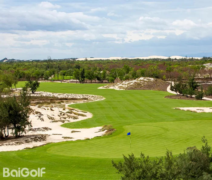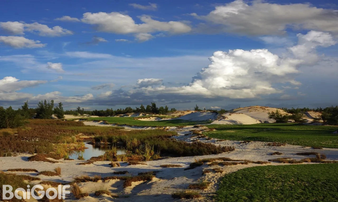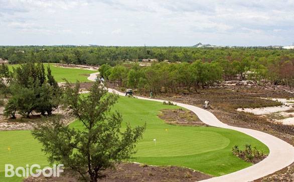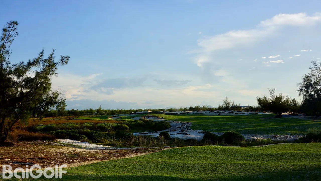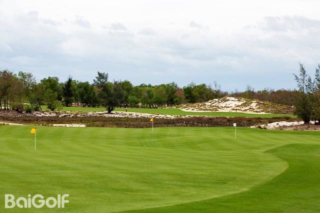 FLC广平高尔夫球场坐落在广宁区海宁公社TAN HAI村的五星级度假胜地——FLC广平海滩及高尔夫度假村内,由世界著名建筑师Brian Curley精心设计。球场的设计重点在于卓越的排水系统、宽敞的球道,以及沙地与长草区之间清晰的边界。这种设计营造出极具视觉冲击力的景观:洁白的沙地、翠绿的百慕大草坪、深绿色的树木和植被,以及环绕沼泽边缘的湛蓝开阔湖水,色彩对比鲜明,令人印象深刻。
