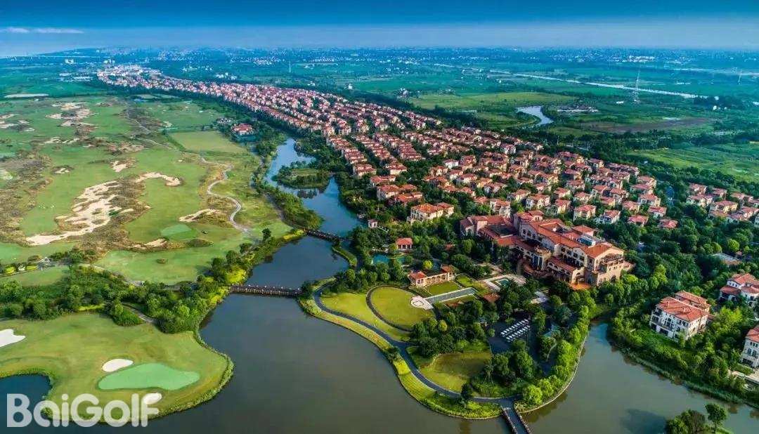 PGA安瀛高尔夫俱乐部(原:揽海国际高尔夫俱乐部)是由尼克劳斯与其长子尼克劳斯二世联名设计的2个18洞国际级锦标赛高尔夫球场,并由IMG担当管理运营顾问,这也是亚洲首个由其父子联名设计的球场,球场将为不同等级的选手带来激情、挑战与乐趣,成为环境友善、与当地自然条件融为一体的国际锦标赛级标准生态球场。揽海国际高尔夫俱乐部是览海国际高尔夫社区的一部分,位于崇明东滩滨江休闲区核心区位,总占地面积为3700亩,其中别墅部分占30万平方米。该社区地势平坦,河流纵横交错,植被以芦苇湿地为主,亦被东滩森林覆盖。