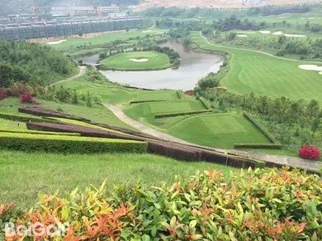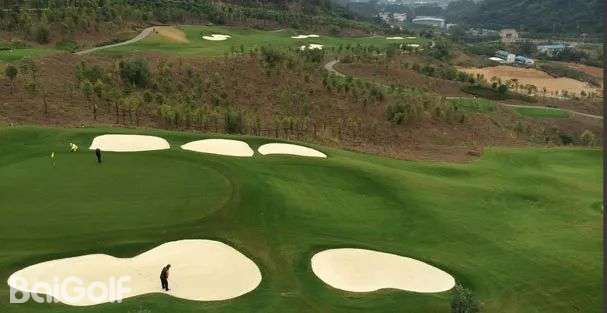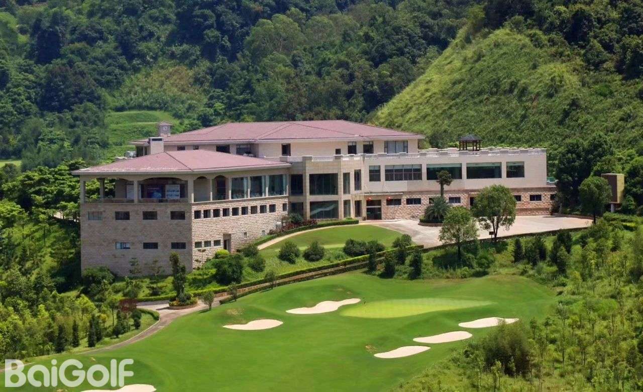 球场占地面积2000亩,球道采用新一代优质低剪白金草,草纹细密美观。球场三面环山,一眼望去,峰峦叠嶂,郁郁葱葱,名贵的沉香木、樟树、美竹与原生态森林构成天然氧吧,精心布置的白色沙坑和湖水相互映衬,无论您在球场哪一个角落都能感受到这片高尔夫乐土的宁静与美丽。这是一个高品质18洞高尔夫球场,由设计过17个高尔夫球场的知名专业设计师桑潘创意设计。球场美丽但不奢华,温婉却暗藏杀机。果岭依山而建,在山丘、陡坡间起伏不定,坡度刁钻,易守难攻,极富挑战性。