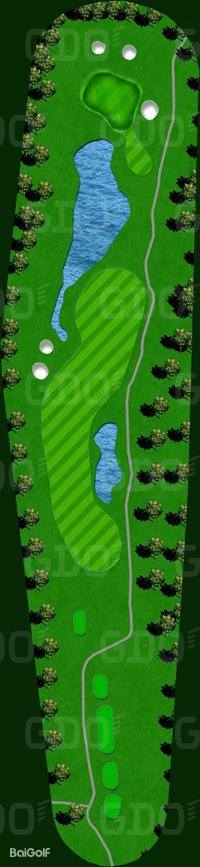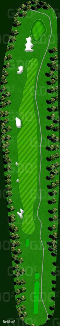 球场保留了大量高大的树木,这是其一大特色。每棵树都长得很高,虽然实际上球道有足够的宽度,但树木的存在严重压缩了视觉上的球道宽度,增加了击球的心理压力。如果球员在击球时处理不当,球可能会进入难以瞄准的区域。