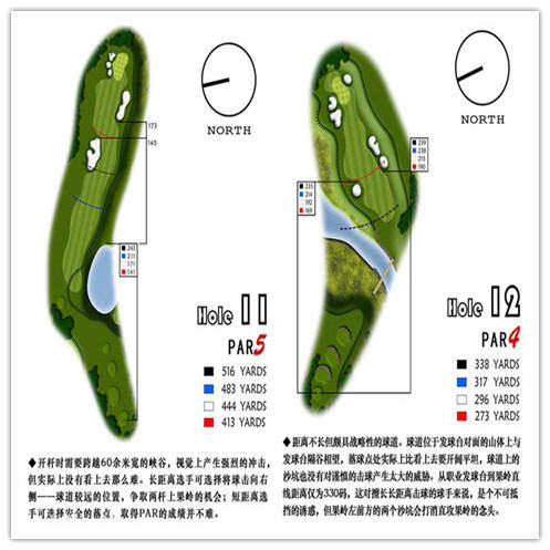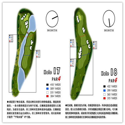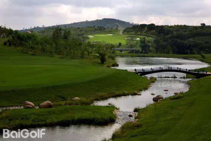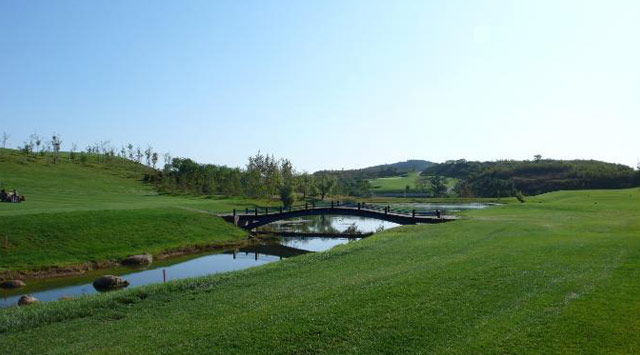 中粮君顶酒庄高尔夫俱乐部,位于自古就有“人间仙境”美誉的山东省蓬莱市,球场建于绵延起伏的丘陵地,紧邻美丽的凤凰湖,磅礴大气。是国内唯一建在葡萄酒庄内的高尔夫球场,球道设计极具特色:或横跨沟壑之上,或蜿蜒深谷之中,或飞落碧水之畔,或穿行翠林之间。而其中前九洞树林繁茂,花果飘香;后九洞起伏跌宕,充满挑战。两种风格在多变的地势中相互映衬,赏心悦目的原生态自然景观和独特的挑战性设计融为一体,与湖对岸的最具东方神韵的个性化葡萄酒庄-君顶酒庄遥相呼应,令人沉醉在山色、湖光、花艳、果香之中,形成了独具特色的球场风格。