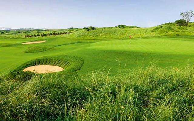 东庄海岸位于浦东机场北侧,两个风格迥异的球场均为标准18洞锦标赛级球场,邀请国际知名球场设计公司JMP担任球场设计及造型工作,总面积超过2700亩,斥资亿元打造。东庄海岸无论是园景球场亦或是林克斯球场球道全长均超过7300码。园景球场(Park land)以挑战性著称,通过各种园林植物的配植,极致巧妙地将自然景观融合于每一洞的发球台和果岭之间。在设计中布满了湖水、小溪,球友打球时需要避开四处蔓延的沙坑,极致的自然景观坐落于每一洞发球台与果岭之间,在繁华喧嚣的城市中,还能享受森林的清新,让人流连忘返。