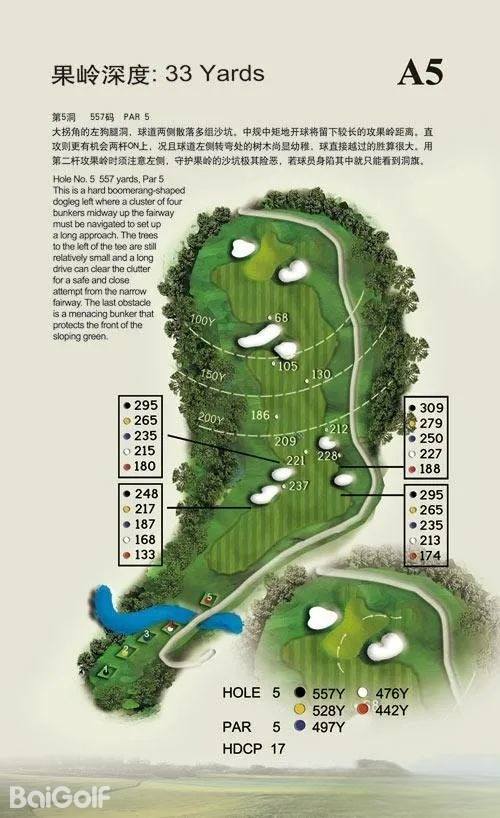 北京鸿华国际高尔夫球会是由香港东方鸿铭集团与北京华汇房地产开发中心合作组建的北京鸿华绿苑运动休闲中心有限公司于2001年在北京开发的不动产项目。本球场位置极佳,座落于朝阳区亚运村北苑路,北距北辰集团五洲大酒店1500米,东距北京2008年奥运会主会场仅1000米。球场总占地135公顷,是一个18洞国际标准球场,拥有会所、练习场等全套设施和一定数量的高尔夫高档住宅。北京鸿华国际高尔夫球场由六届大满贯得主、前世界高尔夫世界冠军尼克.费度(Nick Faldo)设计,设计和建设级别为世界锦标赛级别。此前费度在中国南方共设计过3个球场,鸿华是他在北方设计的第一个球场,也是他的签名球场 - Nick Faldo球场。由于北京市区地势非常平坦,鸿华特别营造山地球场的概念,运进250万立方米土方用于造型,使球手在市区内就可感受世界顶级丘陵球场的挑战和刺激。除果岭和沙坑的配合显示出典型的费度风格外,球场的发球台摒弃了传统的椭圆形状,采用在国内极少的经典的方形设计,沙坑全部使用白色石英沙,不仅使球手感觉耳目一新,更会给予整个球场一种古典、尊贵的王者之气。鸿华的最大乐趣来自果岭,三层设计的果岭拥有极具特色的飘逸裙带。在鸿华球场18个球道中,尼克.费度对第15道情有独钟,特意把它作为自己的签名球道 - Faldo球道。鸿华球场采用世界最先进的雨鸟喷灌系统和雨鸟900E系列喷头,通过中央控制系统,可实现对每一个喷头的单独控制,从而根据球场地势起伏和天气条件创造最佳的喷灌效果。鸿华18洞球场共设置超过1400个喷头,实现“墙到墙”的喷灌覆盖率,这是世界顶级球场的必备条件,目前在国内只有为数不多的几家球场可达到这一标准。