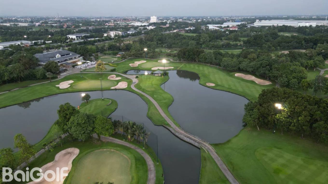 球场并不长,共有 5 组发球台,确保所有球手都能找到适合自己的打球方式。在曼谷高尔夫俱乐部,准确性比长度更重要,除了 3 个洞之外其他所有洞都有水,成熟的树木和 12 个大型湖泊是球场的主要景观。球场的特色之一是 3 杆洞,4 个 3 杆洞中有 3 个在水面上,其中以第 5 洞标志性的岛屿果岭最为突出,在该洞,任何错过果岭的球都会落到水里。该洞距离后发球台 150 码,不是一个长洞,但需要用铁杆精确地攻上位于一个大型人工湖中央的小果岭。第 11 洞也是一个岛式果岭,果岭稍长,果岭有一个边缘,因此不像第 5 洞那样令人生畏,但对所有水平的球员来说仍然是一个有趣的挑战。第 9 洞的双人形击球区五杆洞于1991年被高尔夫杂志评为世界最佳500洞之一。