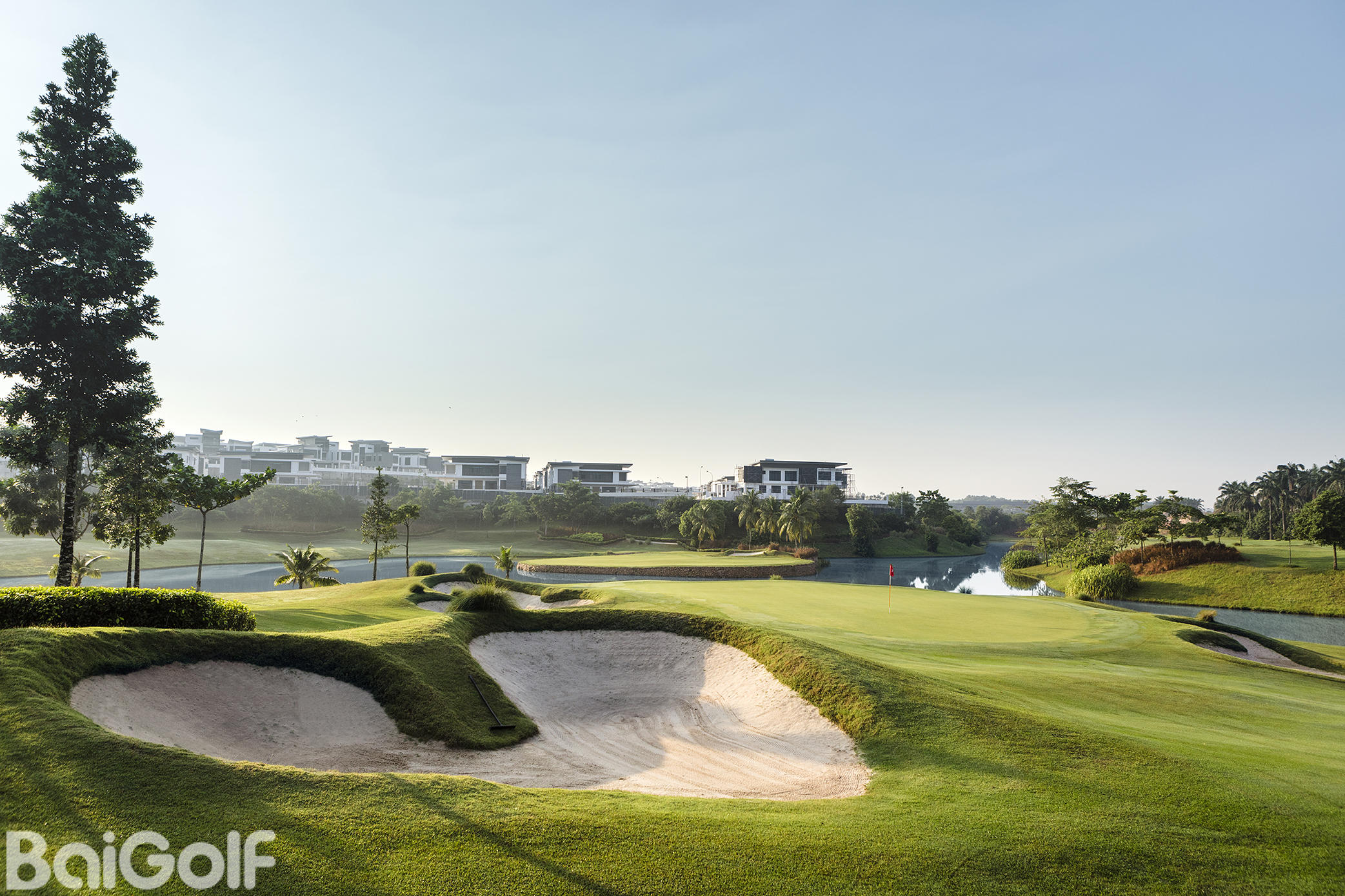 浩然山庄球场在设计上保留土地的自然地形,具有大面积的沙坑。此外,人造瀑布、湖泊和池塘能给专业或业余球手带来许多充满乐趣的挑战。