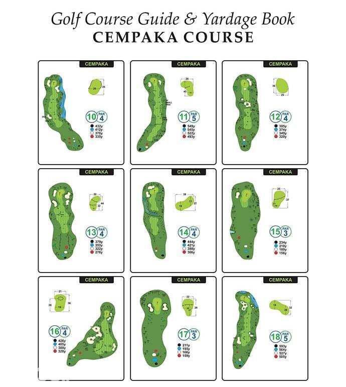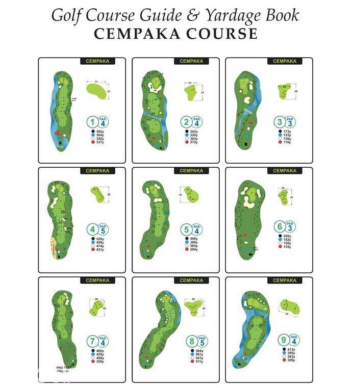 Cempaka球场是一个锦标赛球场,需要额外的注意力。这个球场经常举办本地巡回赛。球场从发球区开始长7156码。具有威胁的曲型球道、狭窄的球道、九个水洞和60个以上的沙坑使得获取高分需要合适的球杆。第九洞的岛屿球道需要特别的关注,以及第十二和十三洞之间的咖啡种植区和十四号洞的深沟也是。
