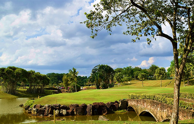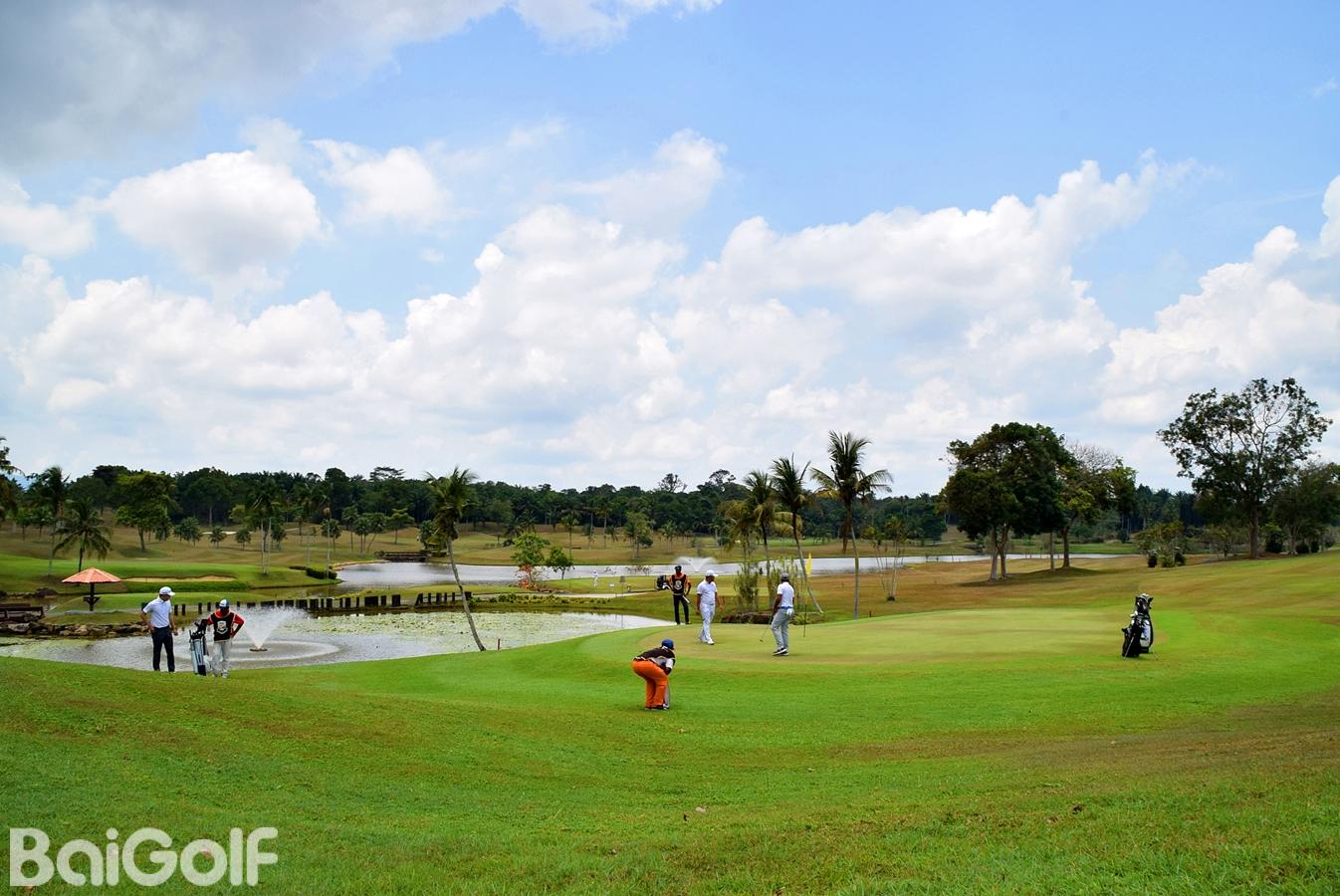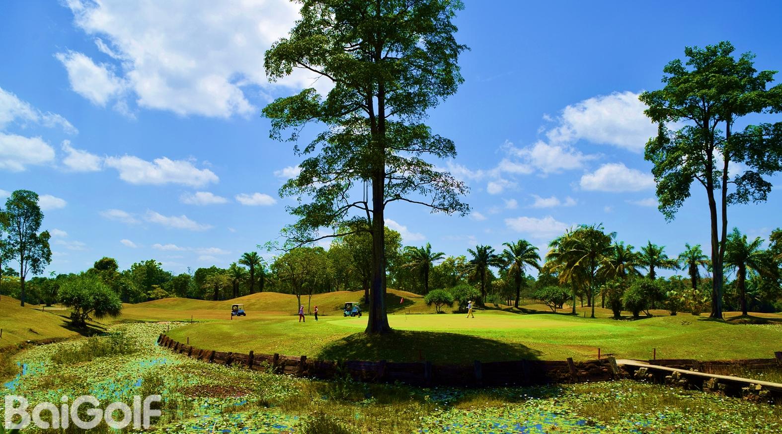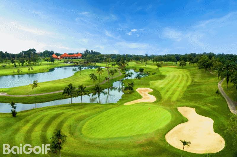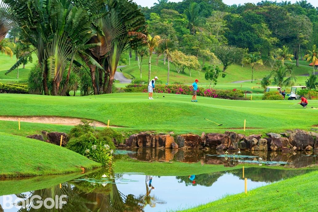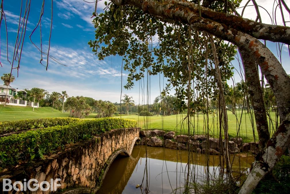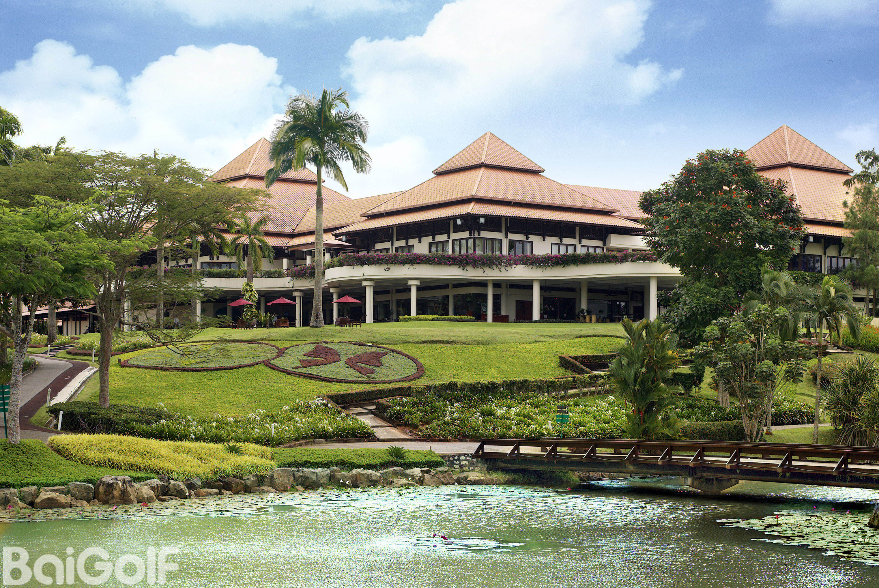三个18洞的锦标赛场地- Allamanda, Cempaka和Melati是根据马来西亚的植物命名的。棕榈度假村覆盖了800英亩的山丘和风景如画的湖泊。每个球场都有很多景色秀丽的花园和天然植物。球道经常临水,有大沙坑,发球区和果岭都这样。