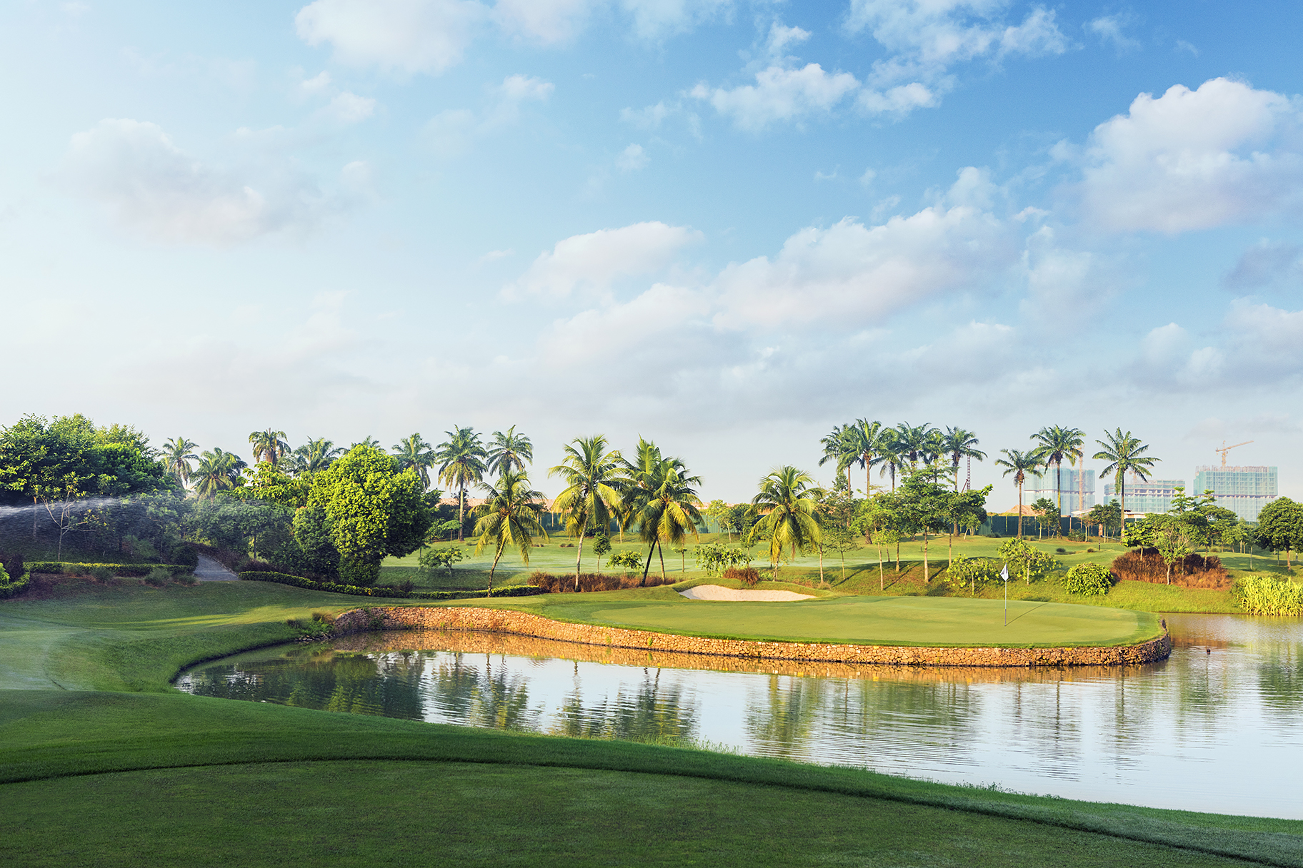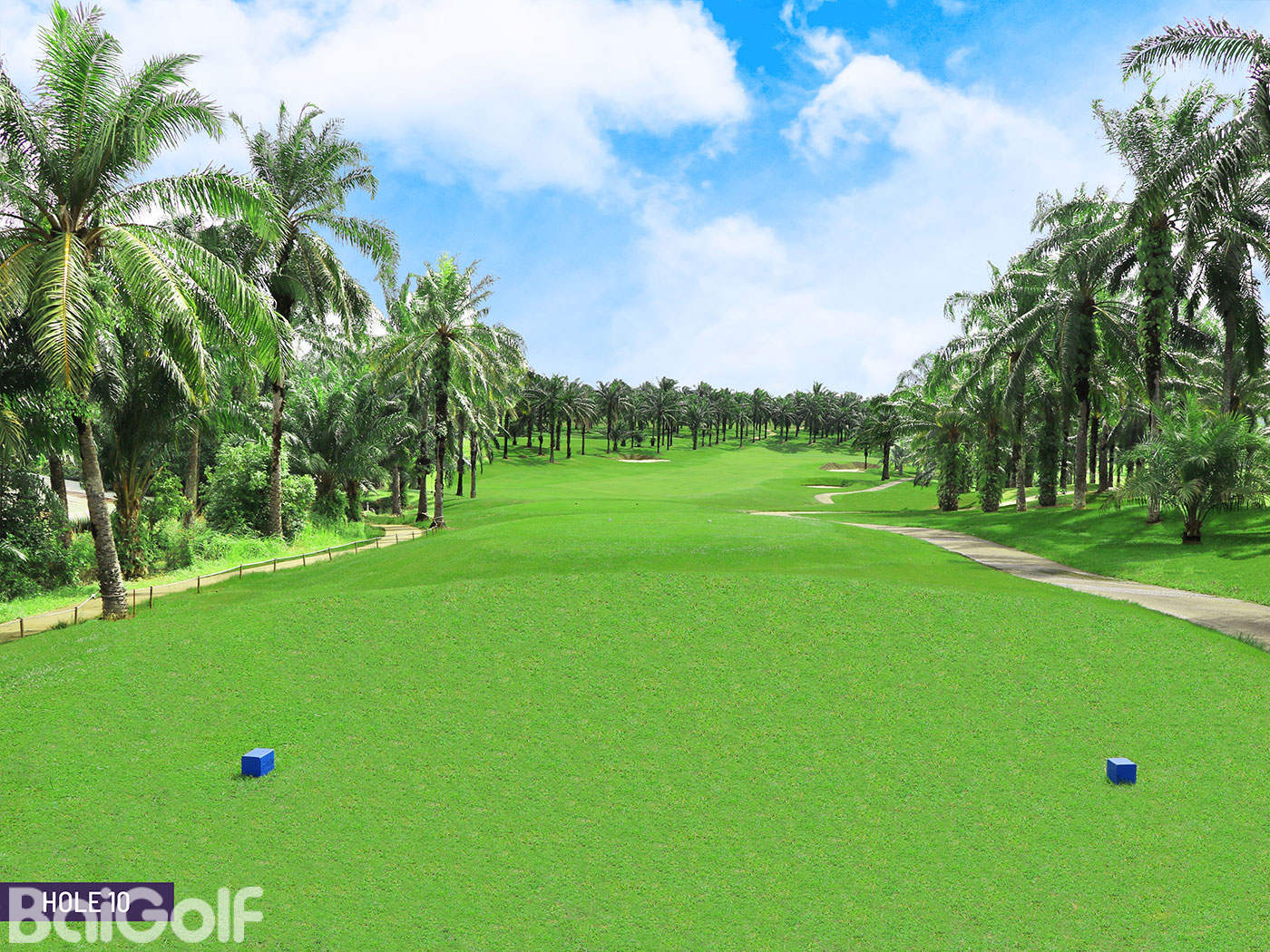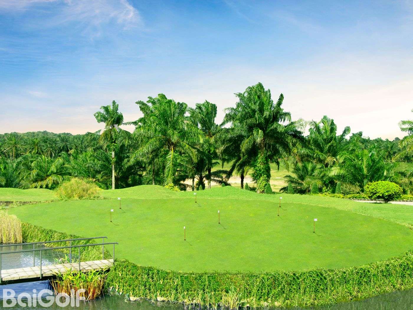 18 洞高尔夫球场坐落在一片前棕榈油种植园的自然全景中,为不同水平的球员提供完美的高尔夫体验。欣赏迷人的高尔夫球场,周围有棕榈油树、鲜花、溪流和热带鸟类等自然环境。前九洞从头到尾都充满挑战,充分考验高尔夫球手的球技,宽阔的球道便于击球,同时,凹凸不平的球道也为击球手带来了挑战。后九洞的地形起伏不平,两旁种满了棕榈树,形成了独特的风格。球道两侧是大型沙坑,球道第一道切口后面是深槽。这里的地形令人惊喜,水障碍较多,考验着高尔夫球手的判断力。一些球洞有小溪两次穿过球道,别具挑战。