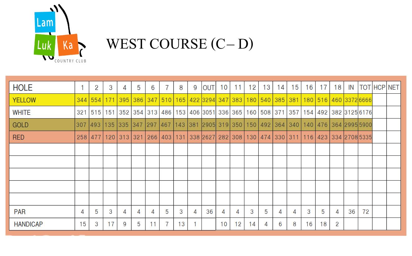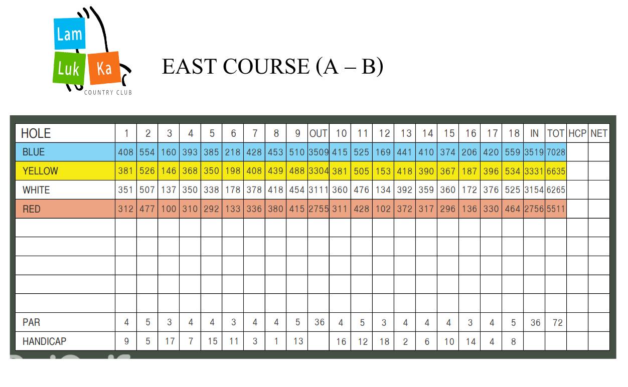 锦标赛东球场非常重视将球打得又长又直。作为 2002 年泰国 PGA 锦标赛的主办地,蓝卢卡东球场更适合各级水平的高尔夫球手,并能同时考验他们的球场把控技巧。后九洞被认为是泰国最好的球洞之一,以极具挑战性的的五杆洞结束。蓝卢卡锦标赛东球场仍然是泰国最具挑战性的球场之一。西球场相对较短,但 15 个洞中都有水,因此球场管理是得分的关键因素。每个洞都提供多种打法选择,让每个球手都体验到不同的乐趣。西球场是游客和休闲高尔夫球手的最爱,里面还有众多本土鸟类和野生动物出没。