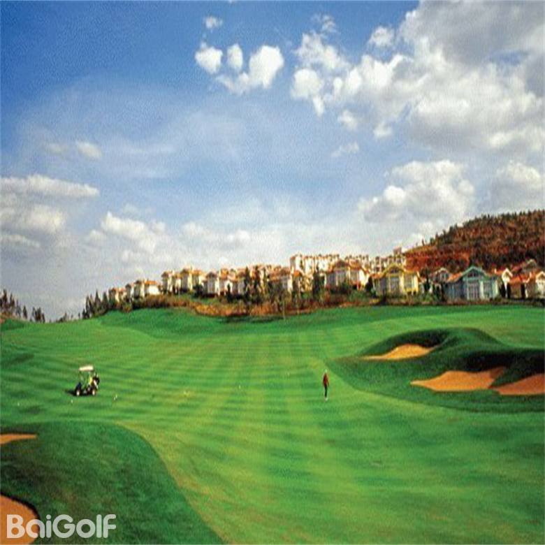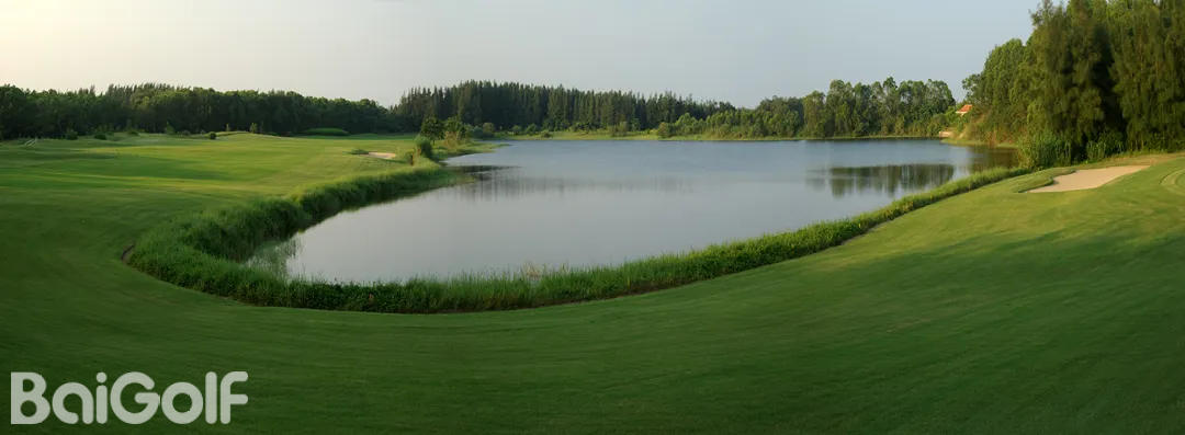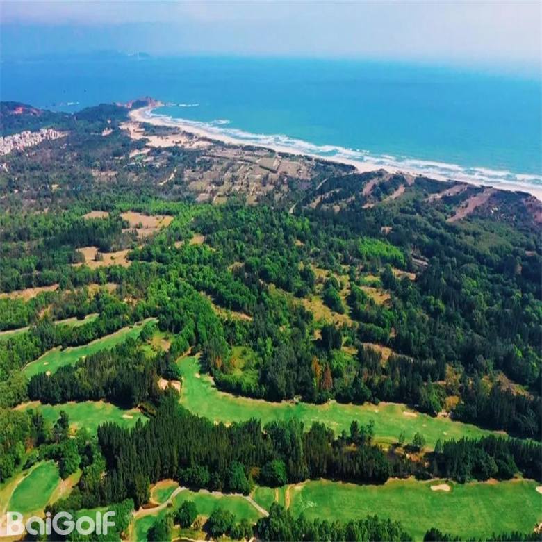 金海湾国际高尔夫球会系中国目前唯一一个建在海滩上的具有国际标准的高尔夫球场,球会由澳大利亚享有盛誉的 T.W.P 公司 Peter Thomson 、Ross 、Peter 先生与中国的 梁国坤 先生集中西高球建设之精华共同设计和造型,具国际标准的美式、澳式和日式球道,标准的七十二洞球场设计依山水地势,别具匠心,变化无穷。球场以金海湾天然美景为基,以尽量发挥高尔夫球挑战精神为本,是国际级高尔夫比赛难得的竞技场地。金海湾风景怡人。远眺蓝天碧海,近观绿草红花苍翠,充满怡静的热带雨林风情。金海湾海滨渡假村凭长达 七公里 的金海湾海滩而建,这里沙滩细软洁白,海面波平浪静,海鸟与风帆齐飞,碧水共蓝天一色。与球场配套的金海湾岛果岭长击练习场,顺应自然,造型独特非凡,恰如其分,宽阔蜿蜒的草坪,豪华典雅的会所,苍翠怡静的热带雨林生态景观,构成廿一世纪中国华南区高球运动、商务活动及娱乐休闲的世外桃源。