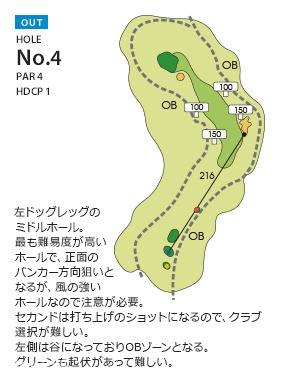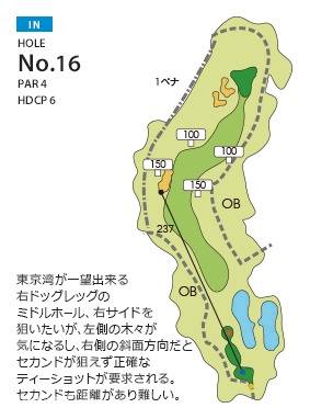 18洞丘陵球场,俯瞰东京湾的绝佳景色魅力无限。球道狭窄,容易受海风影响,击球的难度更大。整体上高低起伏,距离感较难把握。果岭较陡,高低起伏,击球技术极大影响着得分。球场的设计整体上较难,是面向自然的一次挑战。