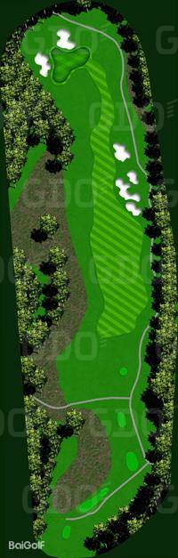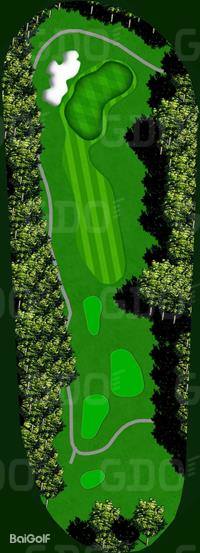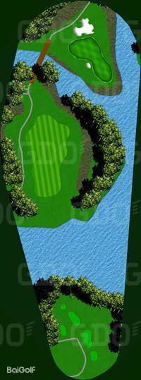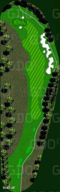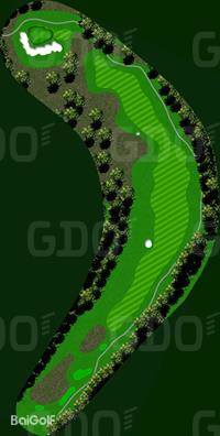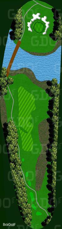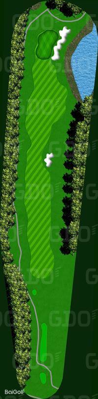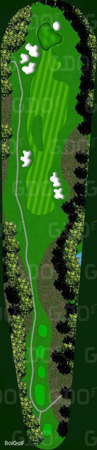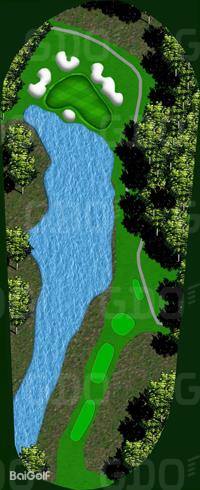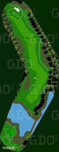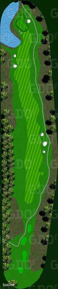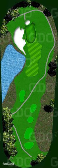 前9洞:1号、2号、4号、5号、6号和9号洞均与池塘相连。其中,2号洞是一个5杆洞,发球和第三杆击球都需要越过右侧的池塘,难度较大。