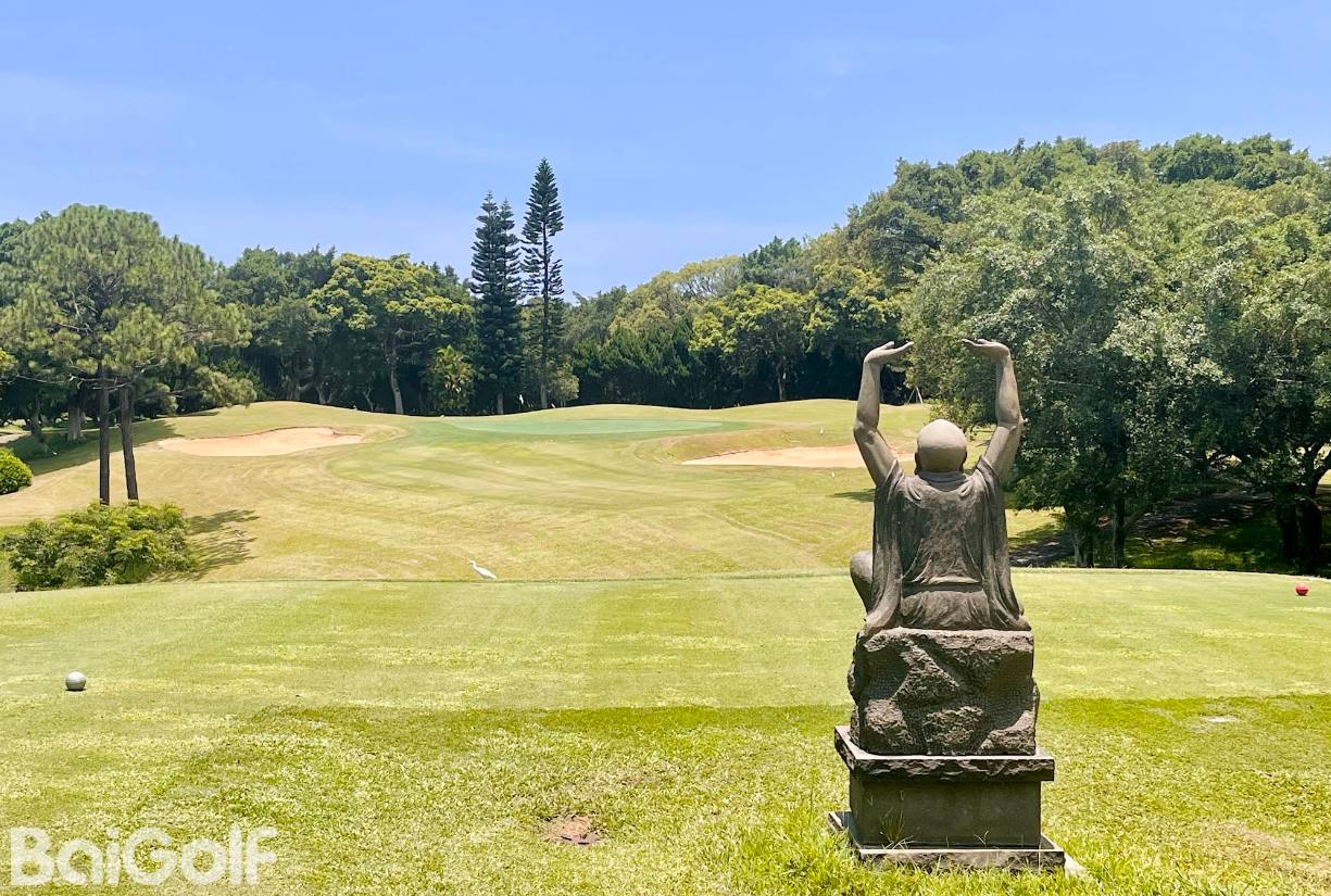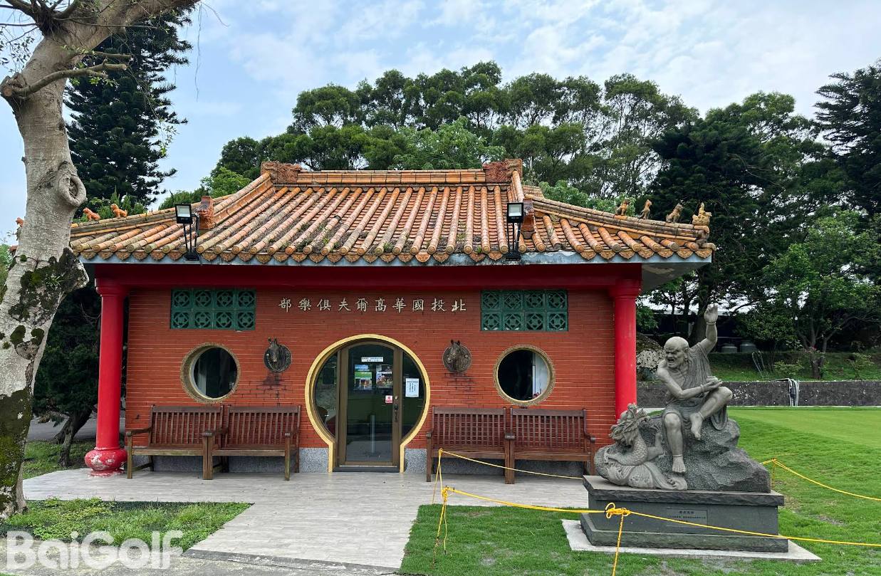 国华高尔夫球场,北负大屯山绪峰、南眺大台北美景,右有观音山淡水海口,左临北投温泉市街、丘陵起伏、河山环抱,冬暖夏凉,四季如春,是高尔夫球的绝佳胜地。国华高尔夫球场座落于大屯山麓、紧邻温泉胜地北投的国华球场,是离台北市区最近的一座球场。从台北市区驱车,沿着复兴冈政战学校旁的稻香路蜿蜒上山,不到二十分钟车程,就能置身在满是绿意的自然怀抱中。地处海拔270公尺高的丘陵地,气候温煦,北负大屯山、南跳大台北盆地、左临北投温泉街、右有淡水河出海口,河山环抱,樱花盛开时节,红樱缤纷,展现出丰富的景致。球场树木比较多,阳光斑驳,大力挥杆有将球打进树木中的可能。会所的入口第一眼看上去不像球场而像是神社,是一座很不错的高尔夫球场。无论是地理环境与自然景观,都是首选。