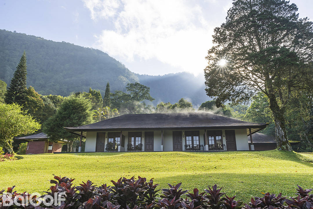 该巴厘岛高尔夫球场坐落在海拔1142米(3750英尺)的高山,气温适宜,温度保持在14和20摄氏度之间。由于温和的温度和郁郁葱葱的热带森林,在这里打高尔夫是非常愉快的享受。