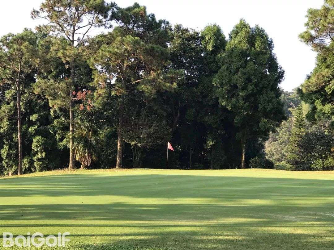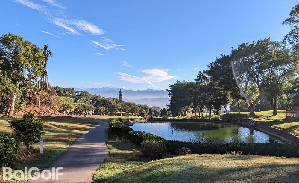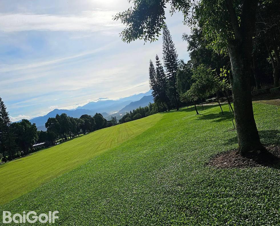 南投(松伯岭)高尔夫俱乐部位于南投县松伯岭的台地之上,由陈金狮所设计,是一个18洞,标准杆72杆,6855码的高尔夫球场。球场相对来说比较平坦,各个洞之间几乎没有太大的分离。水池的设置也没有给发球台和第二次发球带来很大的压力,球道上的沙坑,也没有太大的威胁。果岭受倾斜度和植被的影响,比较容易影响打球的分数。果岭的两侧就是OB区,如果不避开果岭横向和深处的OB区,并采取正确的挥杆,将会对得分造成影响,球场球道被树木分离开来,有点狭窄。球场原始林相生态处处皆是,每到花开结果时节,花香四溢,万般美景尽收眼底,为球场一大特色。