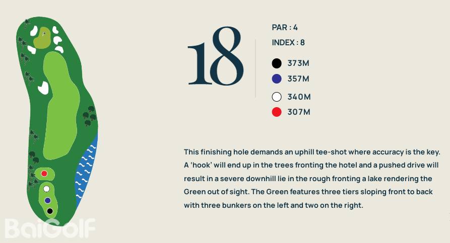 平坦球道采用百慕达草419系列(Bermuda Tifway 419),格琳玛丽高尔夫乡村俱乐部风光明媚兼具挑战性。各级球迷来此,必留下难忘美好回忆。
