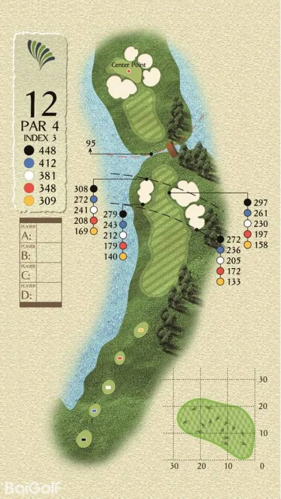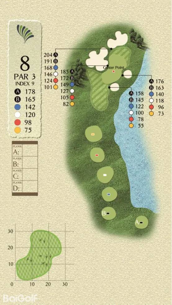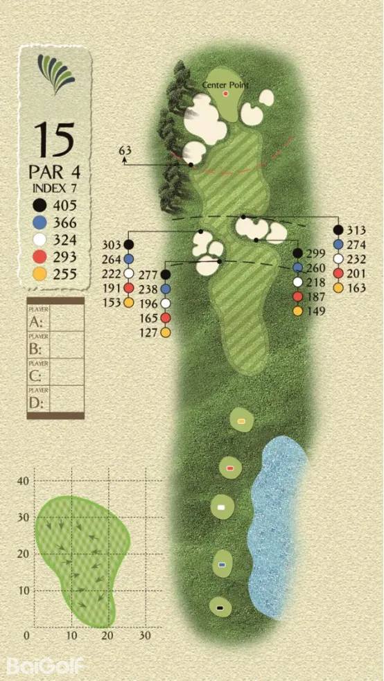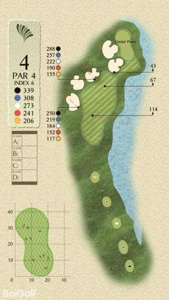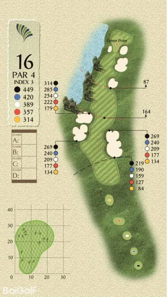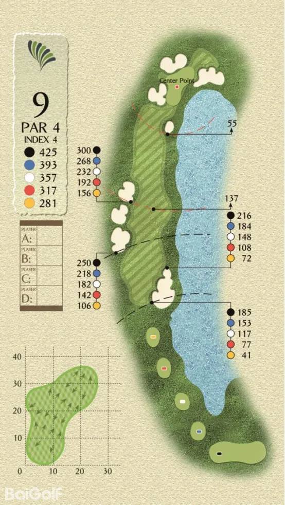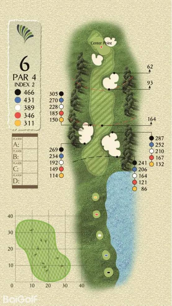 球场由科林.蒙哥马利设计,球场巧妙变化,贴近自然,球道周围水域环绕,青翠的球道与清澈透碧的湖水相辉映,令人赏心悦目。另外,造型独特的沙坑和变化多端的海风也时刻考验着球友的应变与智慧,充分显示传统苏格兰风格球场的迷人风采和国际赛场的独特魅力。