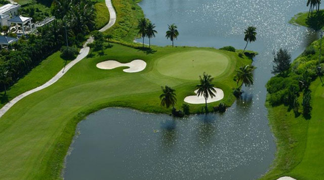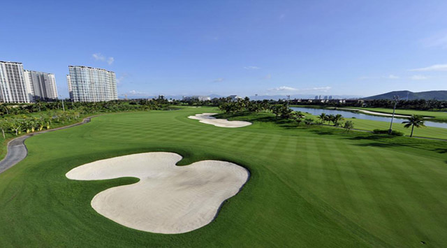 ゴルフ場は敷地面積が1100ムー余りで、コース全長7248ヤード、64のバンカーがあり、人工湖の面積が約10万平米です。アメリカで名を知られたN&Hゴルフデザイン社のトップデザイナーNeilHaworthにデザインされ、18ホール・72グロスのフルライトの国際標準のトーナメント型ゴルフ場です。ゴルフ場のデザイン配置は鹿回頭半島の原生態の地形地貌を生かし、各コースにはコースが狭くて、平面の起伏が大きく、バンカーが多くて大きいなどの特徴があり、立体感が強く、地勢の高低差の変化により、コースの難易度係数を増やし、プレーの趣と挑戦性を向上できます。