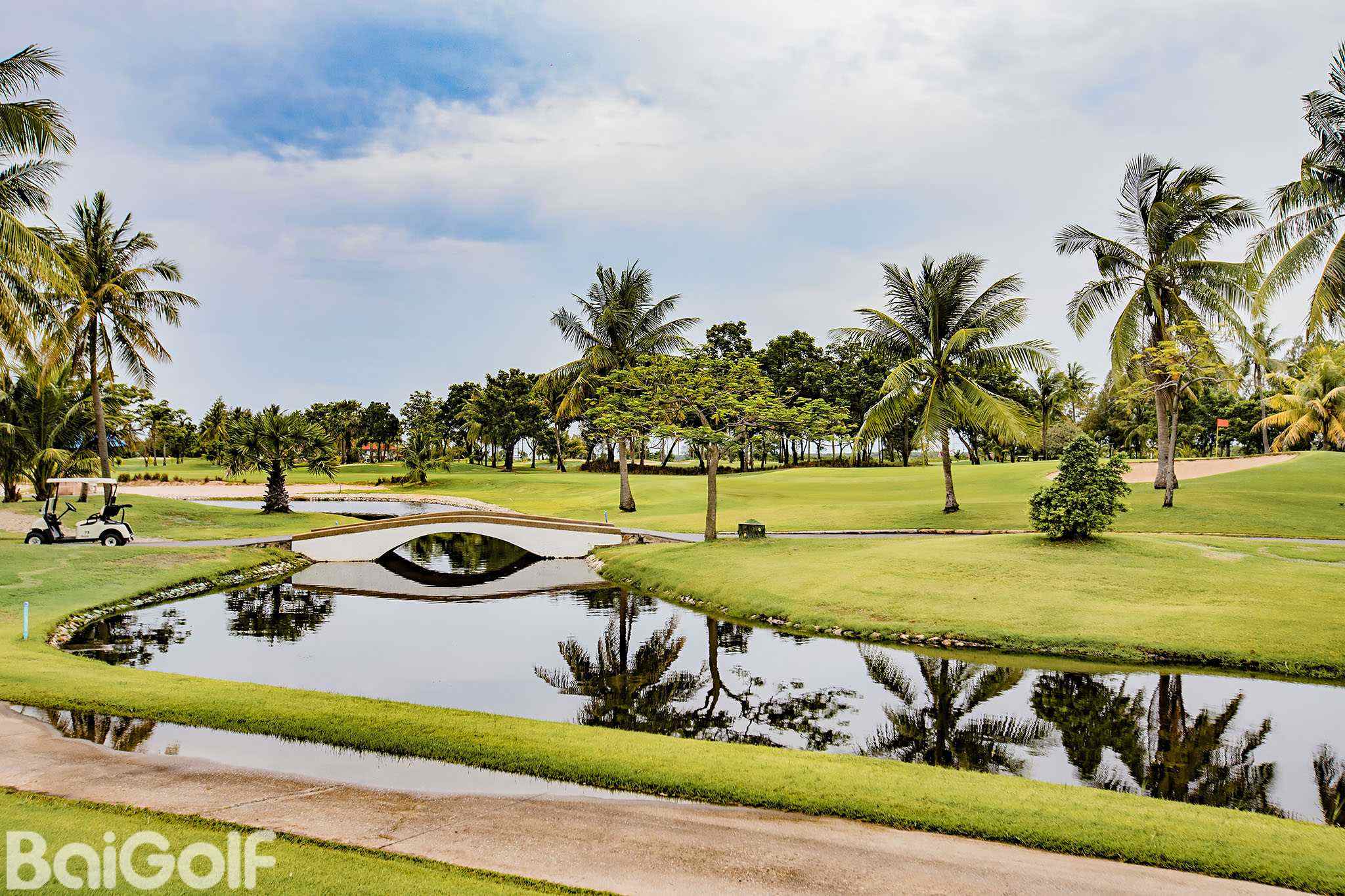 皇家湖畔高尔夫球场坐落在邦巴功河的入海口,周围景色美丽,有很多灌木和花草,1993年开业,2011年经过重新整修。有些球洞是沿着邦巴功河岸设计的,还有一些是在一个很大的环绕球场的咸水湖旁。由于在河边,球场白天经常有凉爽的微风,美丽的周围景色使得这里的高尔夫体验更有趣。皇家湖畔球场感觉相当开阔,这得益于宽阔的球道和轻微的半长草区,这使得寻找球相对容易。球场有很多棕榈树、桉树和其他一些树种,还有一簇簇的花朵、灌木和小溪流, 创建了一个像花园一样的曼谷球场。