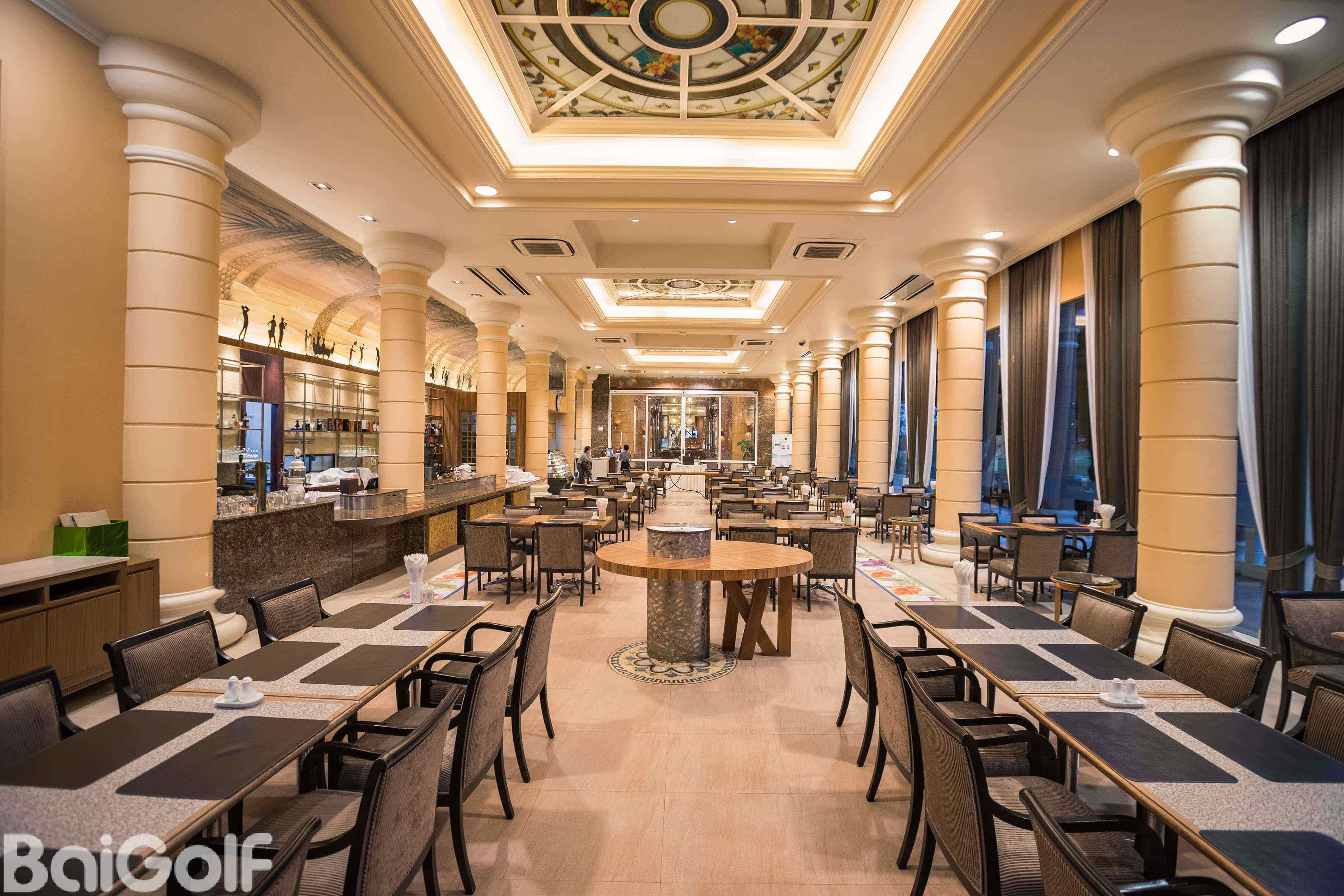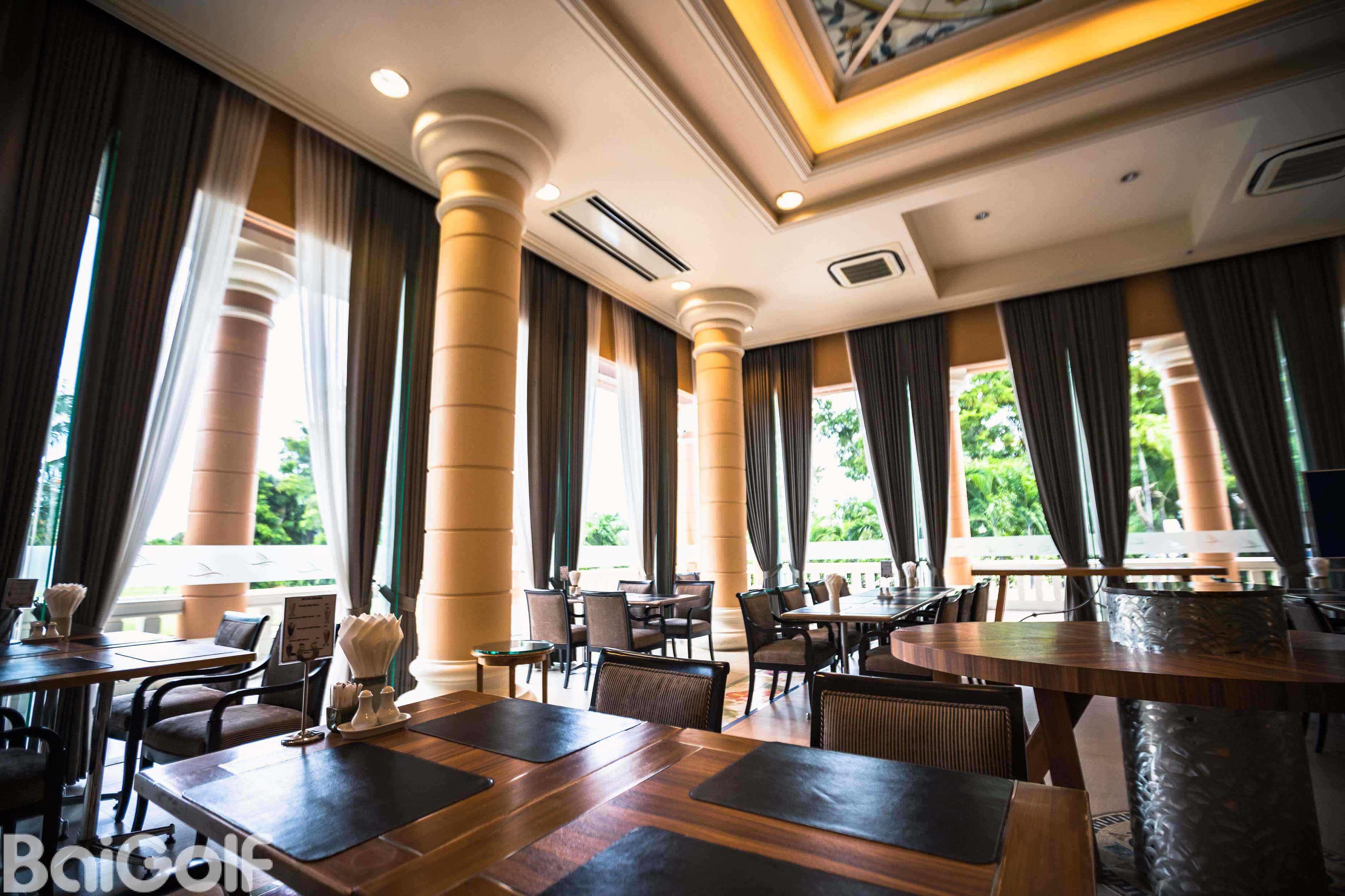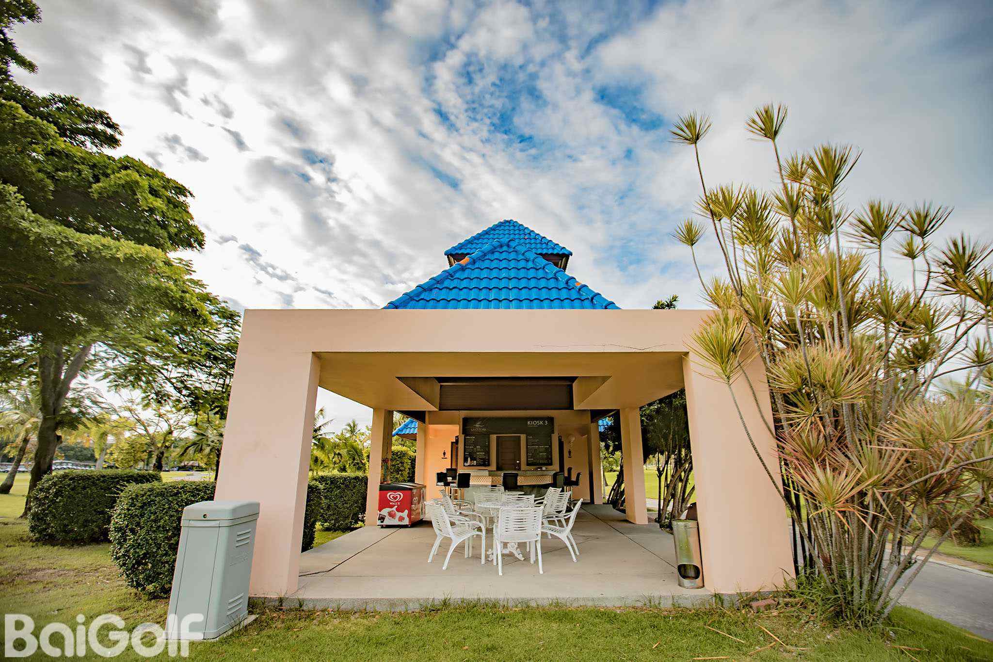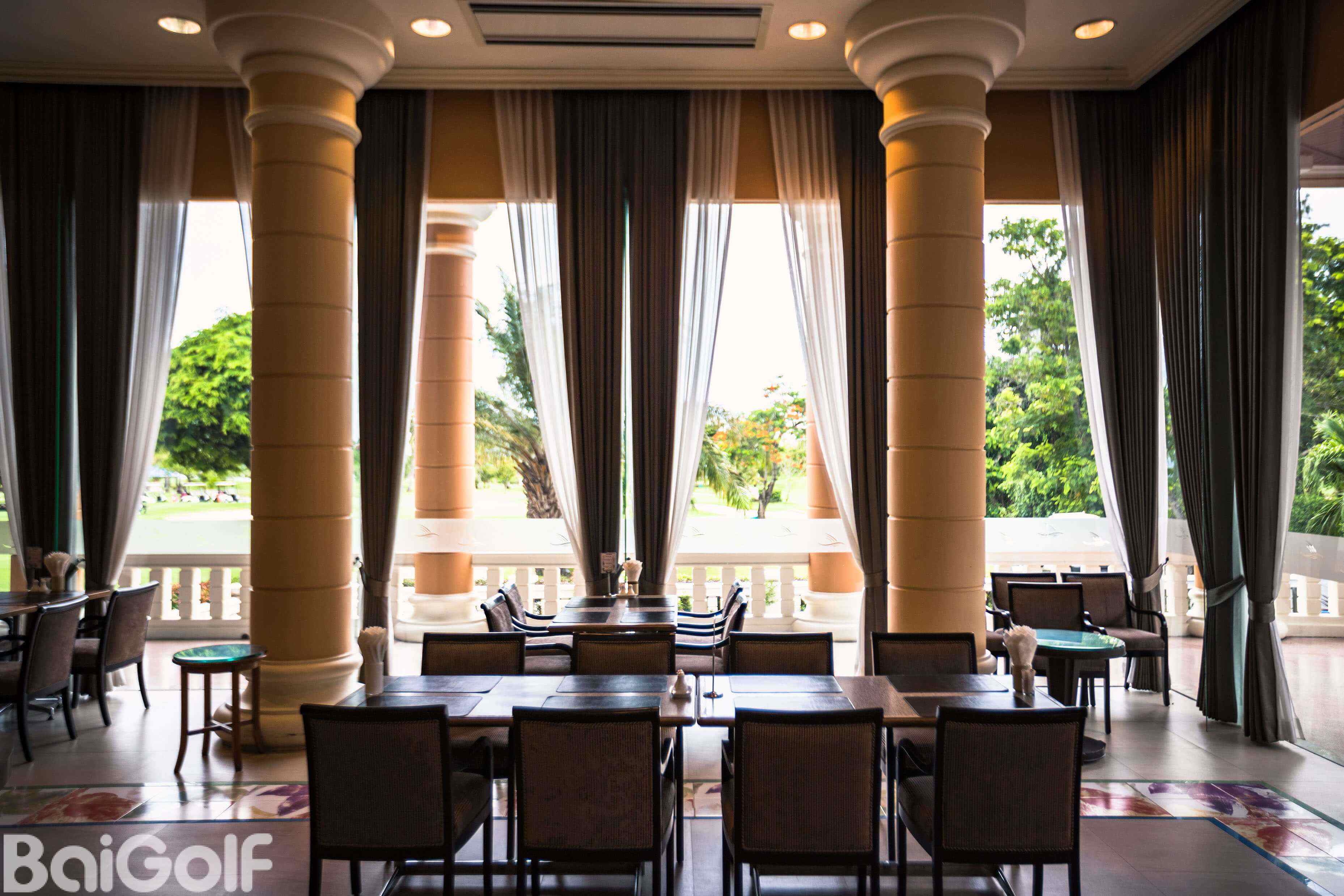 白色外观的俱乐部会所内部环境非常舒适。附近有一座码头,可以代客安排船上行程。俱乐部服务周到,日式风格和较低的费用使之成为了百高球友度假的好去处。