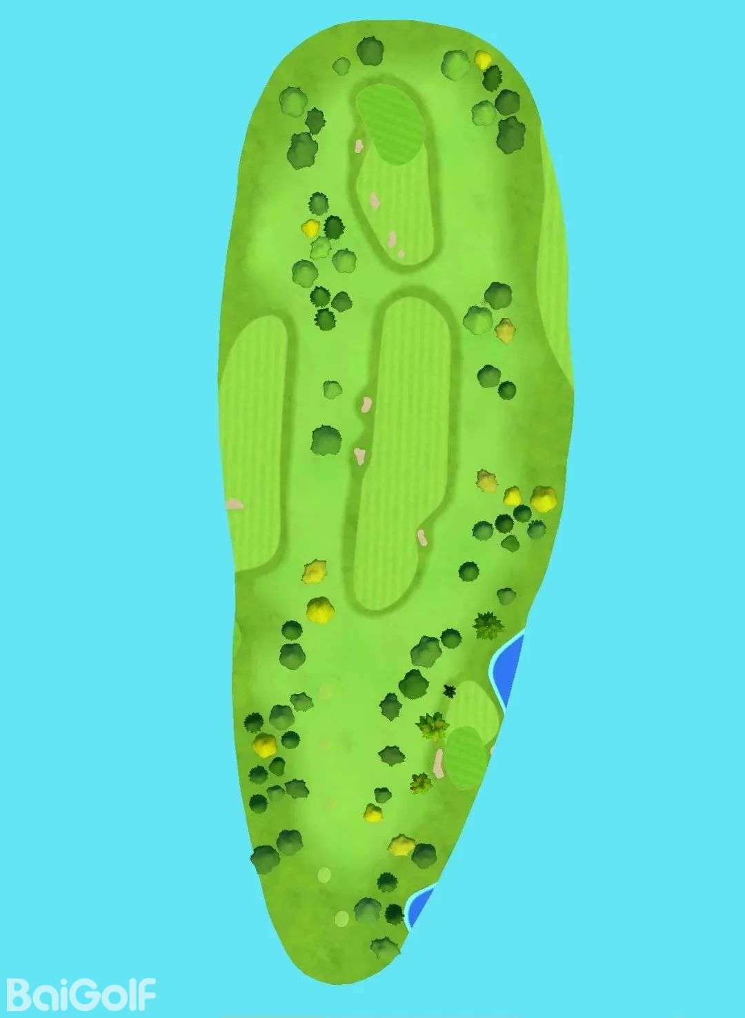 在前九洞,能体验到橡树谷乡村俱乐部第3洞和第4洞的教堂长凳沙坑,第2洞的灵感来自杰克·尼克劳斯设计的湾山俱乐部第6洞,这是一个像香蕉形状的5杆洞,一侧全是水,一直到果岭都充满了危险。第3洞是一个三杆洞,基于锯齿草第17洞的岛果岭——球员锦标赛的举办地,也是许多戏剧性场面的发生地。你还会体验到圣安德鲁斯老球场的路边洞——高尔夫的发源地,皇家特伦的“邮票”洞和贝尔弗雷的第18洞。后九洞,将有机会体验奥古斯塔国家高尔夫俱乐部的最后九洞,并亲自体验阿门角的戏剧性。球场种植了数百棵树,看起来就更像奥古斯塔球场了。