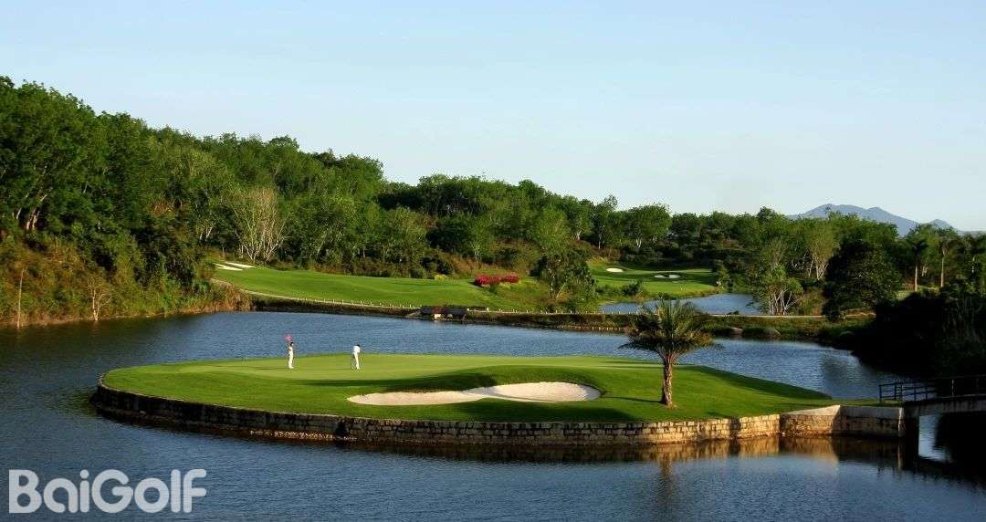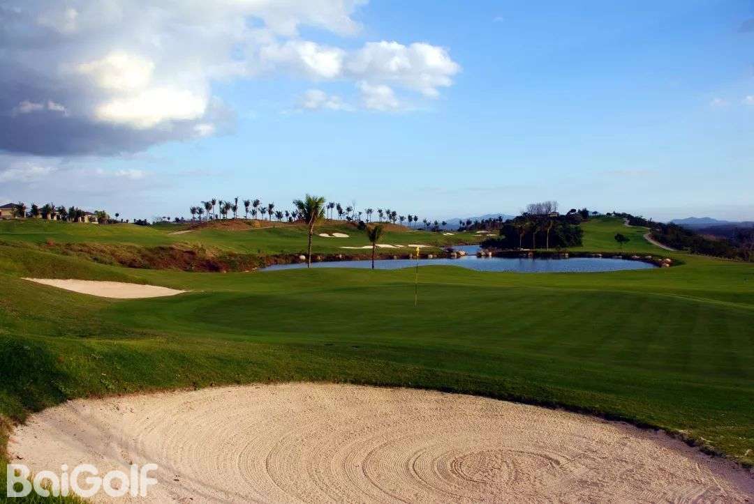 球场占地面积1488亩,球道全长7151码,最大球道落差达50余米,极富挑战意味。超细海滨雀稗草果岭,坪质细腻,推球感极好。场内球道起伏跌宕、水系纵横交错;12个天然湖泊清澈如镜,59个银白色障碍沙坑星罗棋布;水中果岭考验球技的精准,攻岭路线变化多端;使球手在享受高尔夫运动无穷乐趣的同时,让高尔夫战略得以淋漓尽致的发挥。