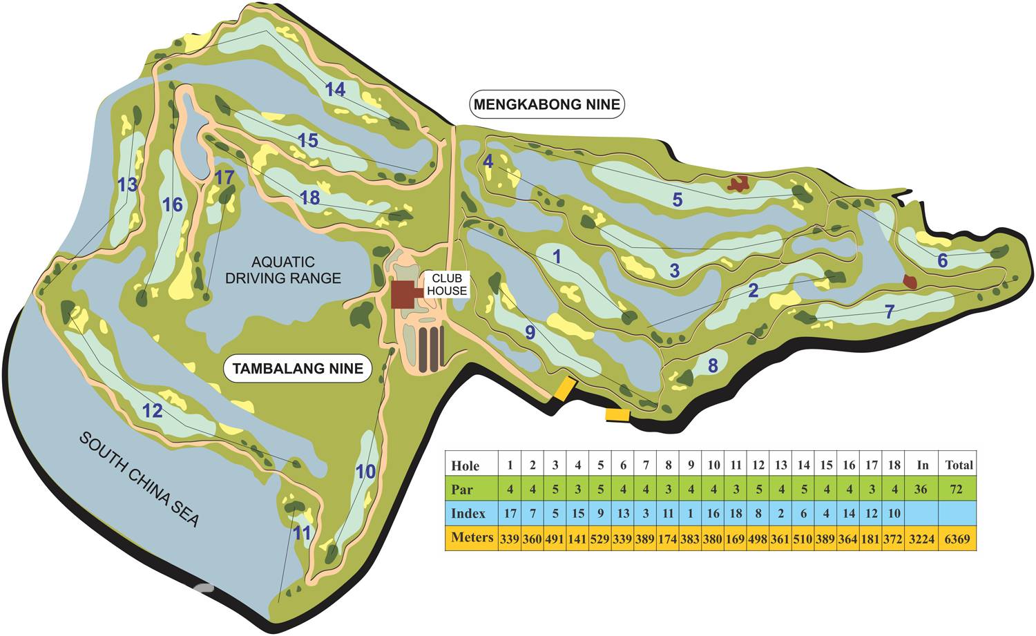 该球场的设计旨在迎合马来西亚沙巴州的地方和乡村环境,与世界上最佳的高尔夫度假胜地一决高下。大部分球洞都得以观赏东南亚的最高峰京那巴鲁山的壮观景色,而一天中最好的观景时间则是清晨,在每日云雾滚滚而来之前大饱眼福。